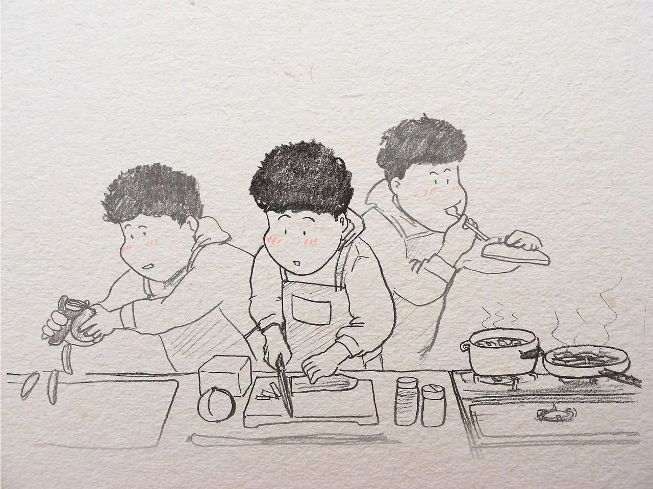 '양적 축적이 질적 변화를 가져온다'고 매일 요리를 하다 보니 처음엔 수직으로 누르던 칼질도 앞으로 밀듯이 자르면 부드럽게 잘리는 걸 깨닫기도 하고, 굽는 시간, 끓이는 순서, 간 조절 등 하나하나 맛의 깊이를 더해가며 전담 요리사로 거듭나게 되었다.