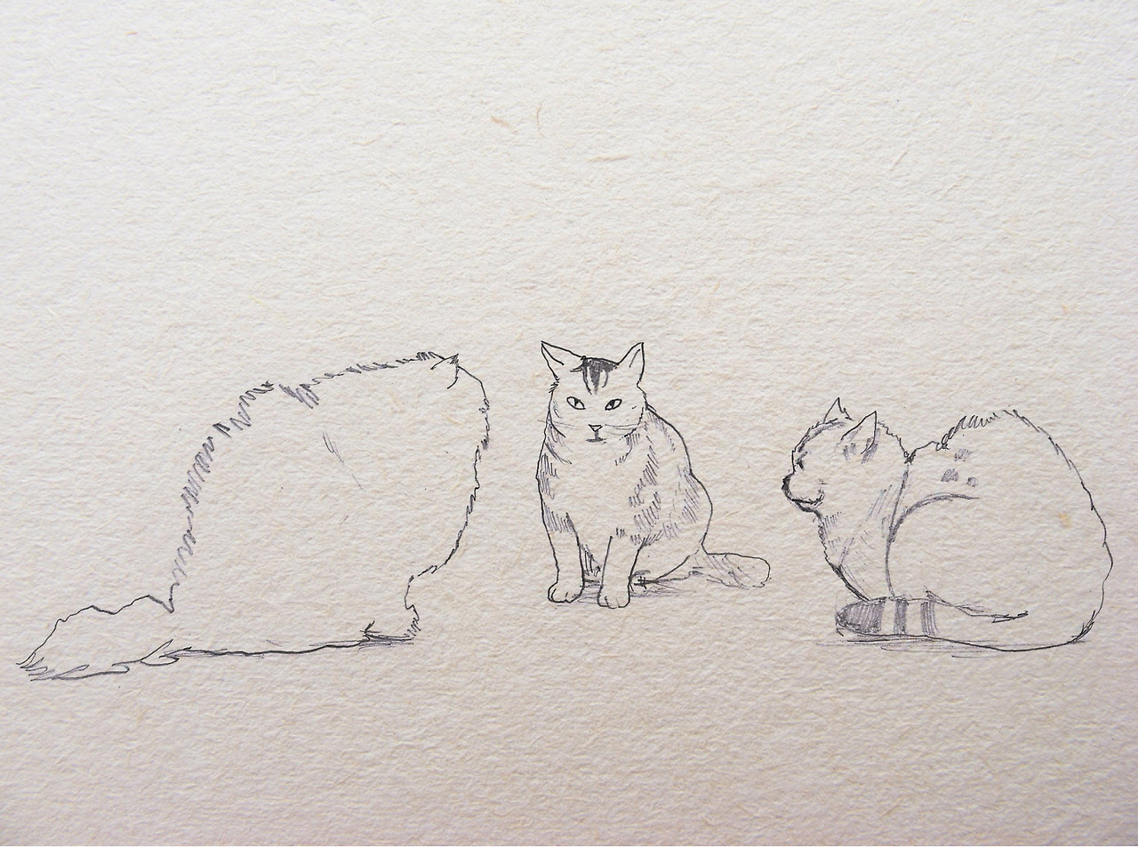 그리다 보면 한 번씩 다가오는 고양이들을 물리치며 그리느라 힘이 두 배는 들었던 것 같다.
