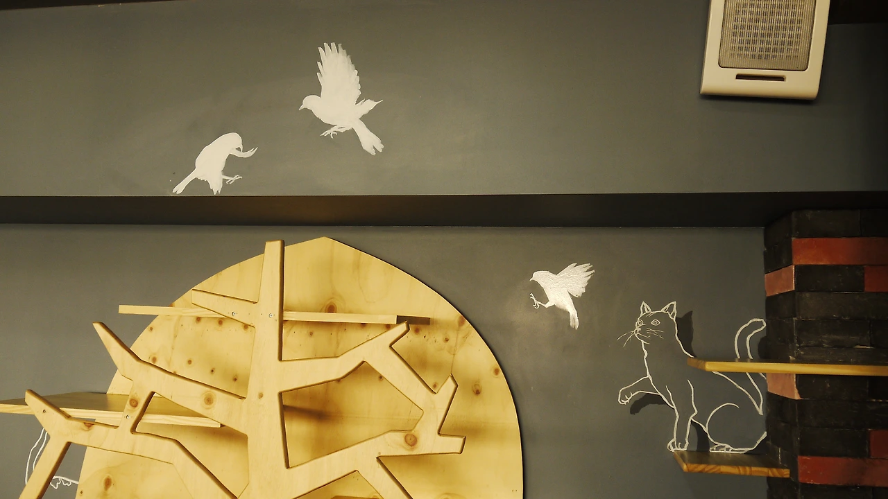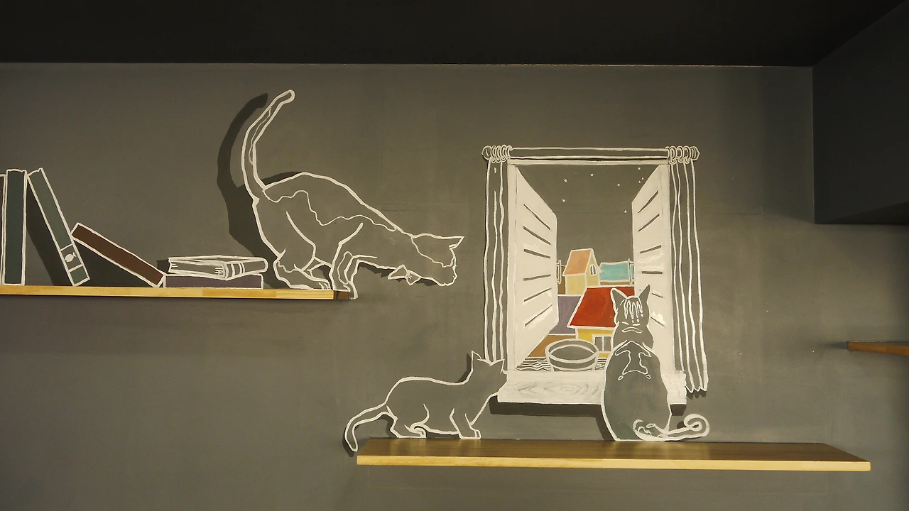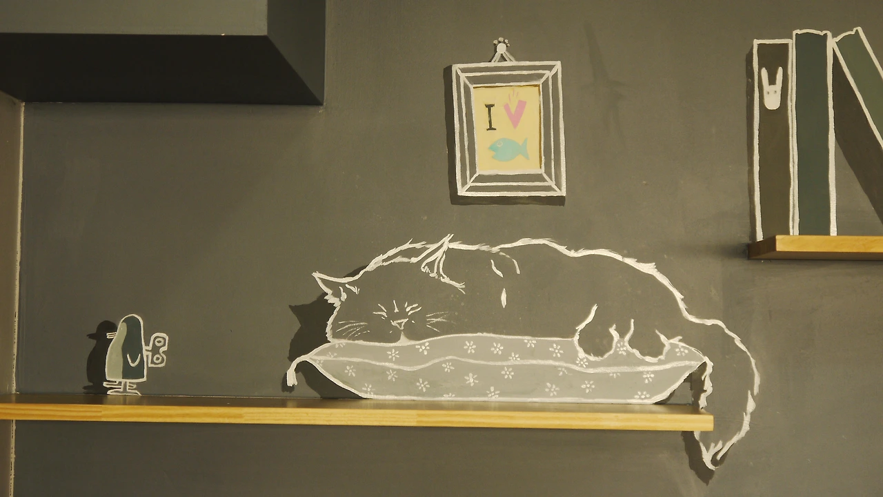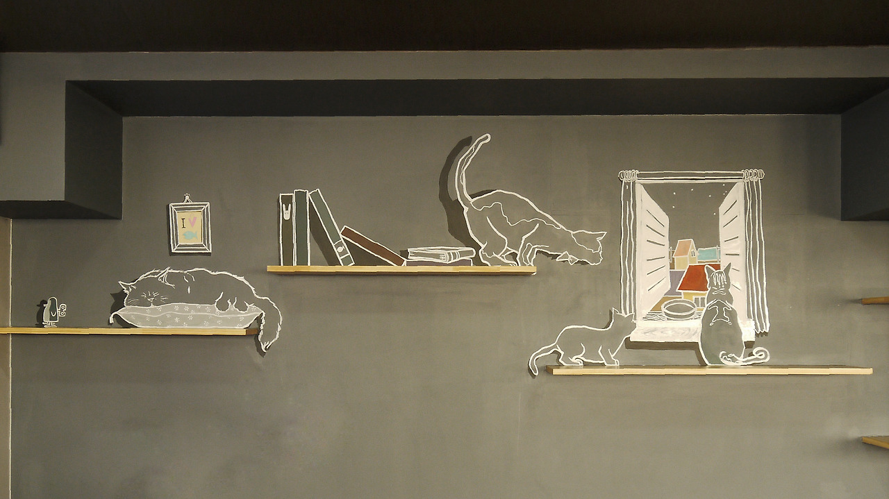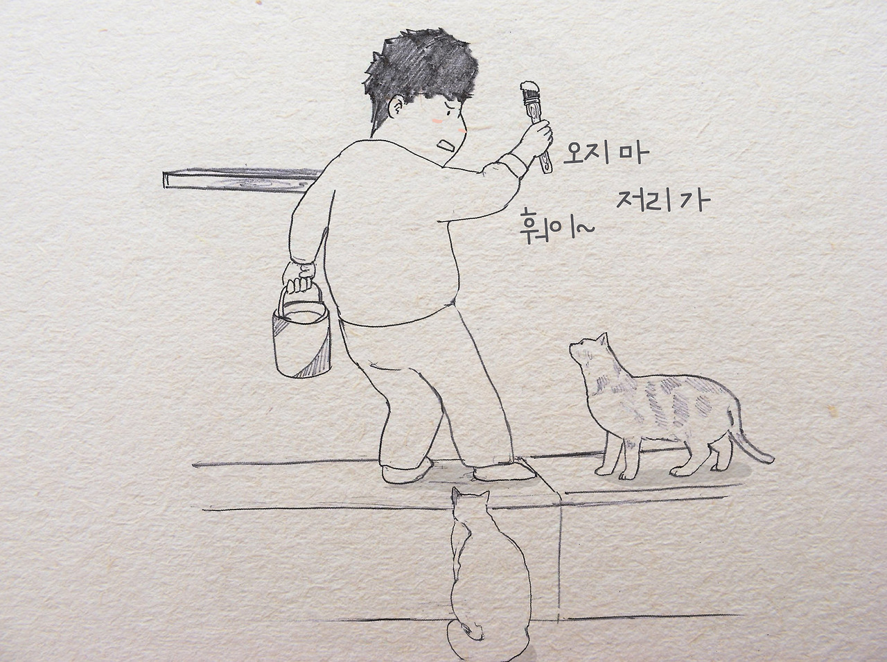 친한 형이 오랜만에 연락이 와선 '잠만 자지 말고 용돈이나 버는 게 어떠냐'며 벽에 그림을 그려달라는 부탁을 해왔는데 하필이면 장소가 '고양이 카페'였다.