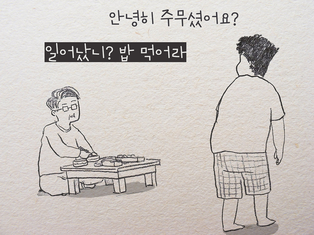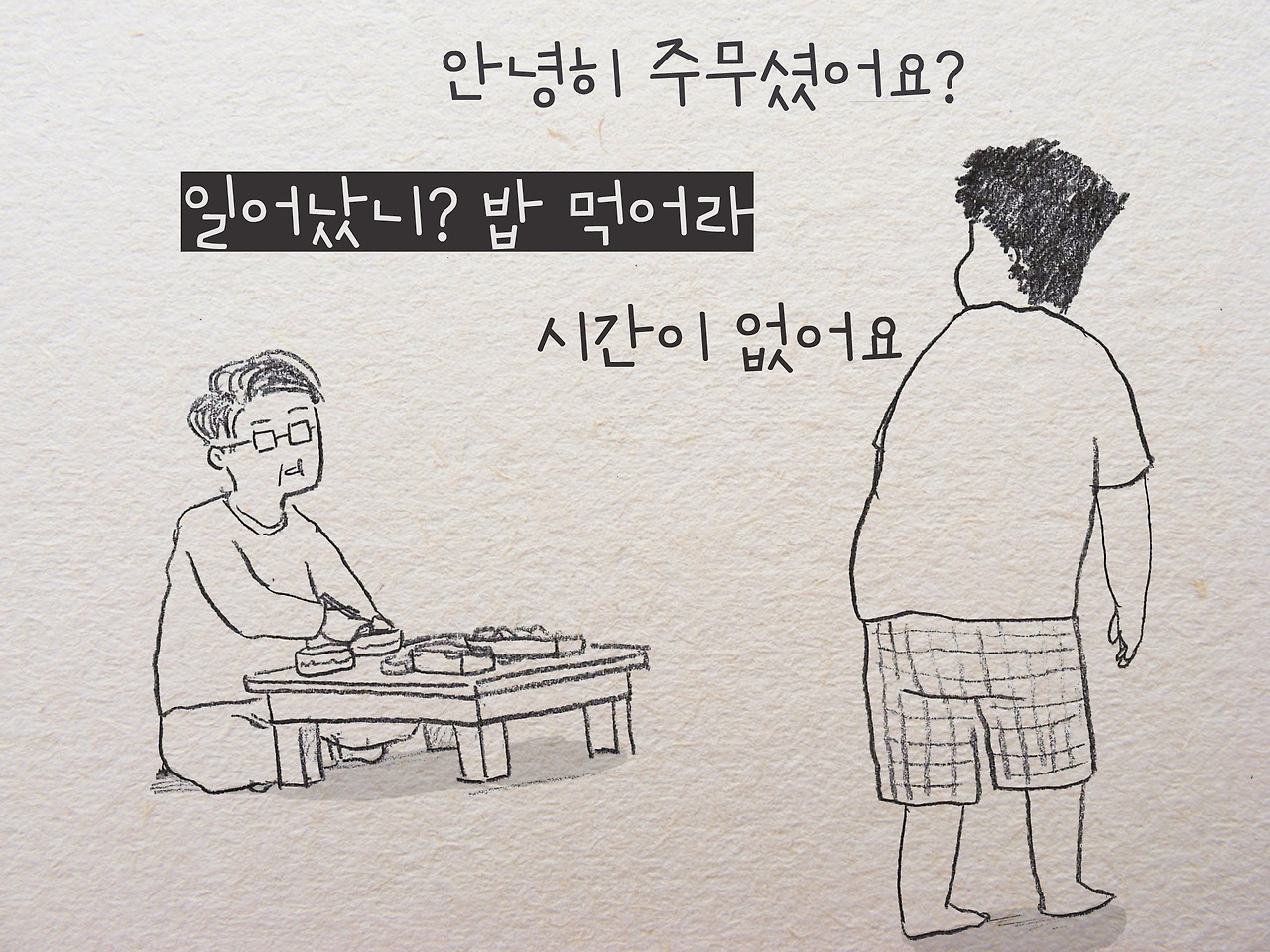 급하게 나가느라 시간이 안 되는 걸 뻔히 아실 텐데, 빈속으로 출근하는 게 마음에 걸리시는지 아침엔 꼭 밥 먹으라 하시는 아버지.