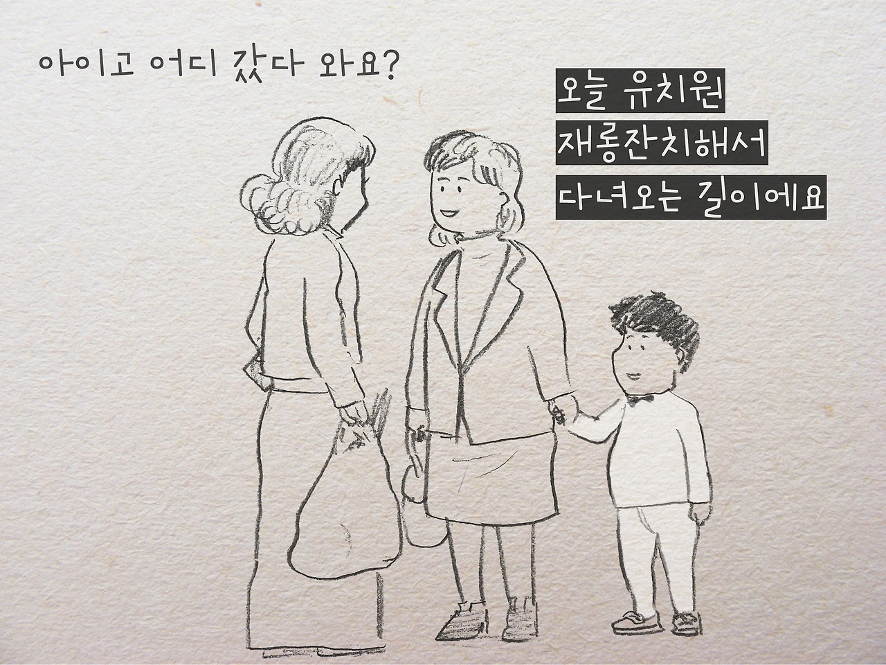 바지를 안 입고 다니는 기분이라 처음엔 좀 민망했지만 엄마 말이 결국 맞았다. 정말 다행히 아무도 알아보지 못해 무사히 재롱잔치를 마칠 수 있었다.