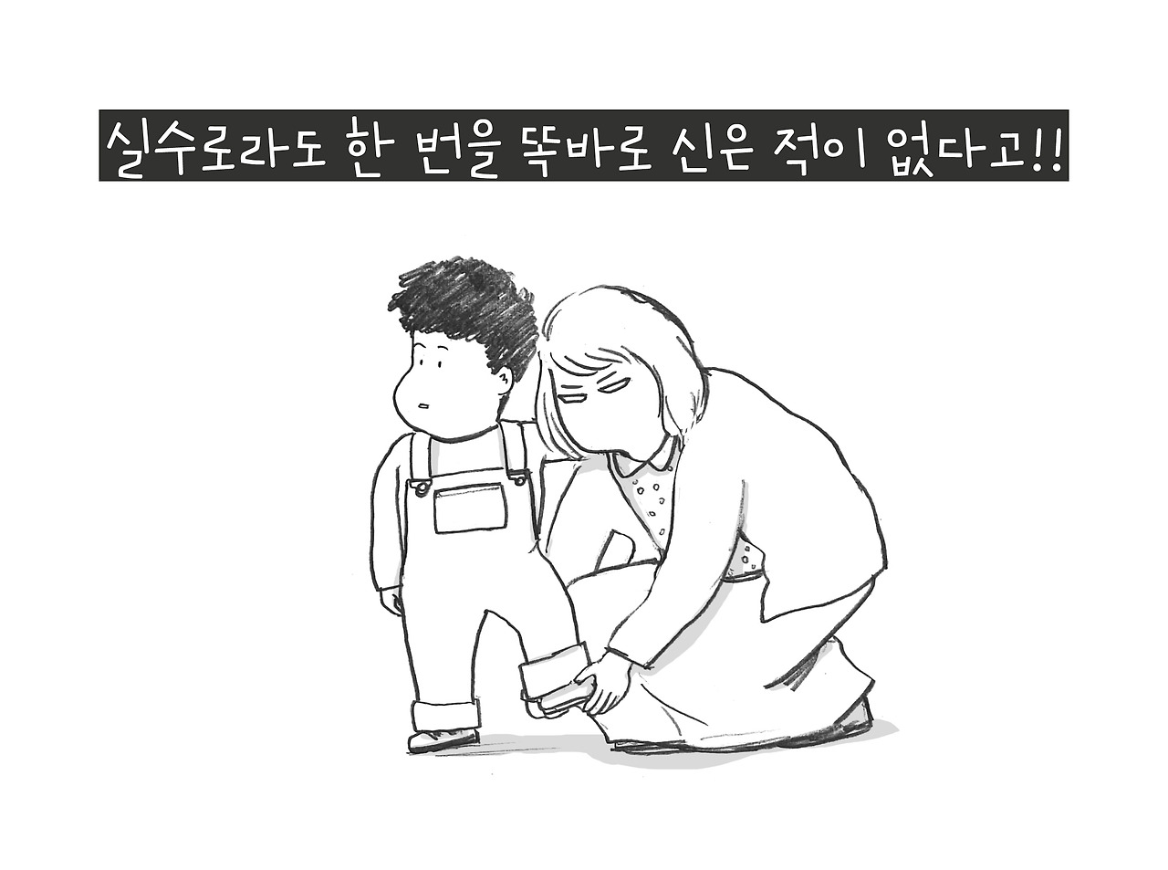 혹시 많이 겪는 일이라면 어린아이 신발은 반대로 만들어야 하는 건 아닌가 잠시 고민했던 하루.