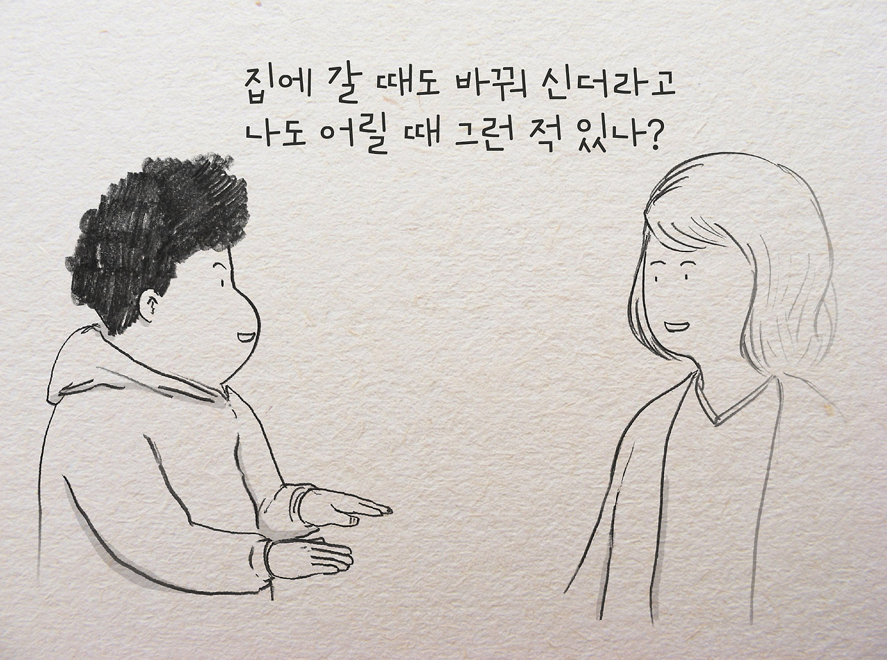 불편하진 않다지만 골똘히 보면서도 바꿔 신는 게 참 우습기도 하고 귀엽기도 하고.