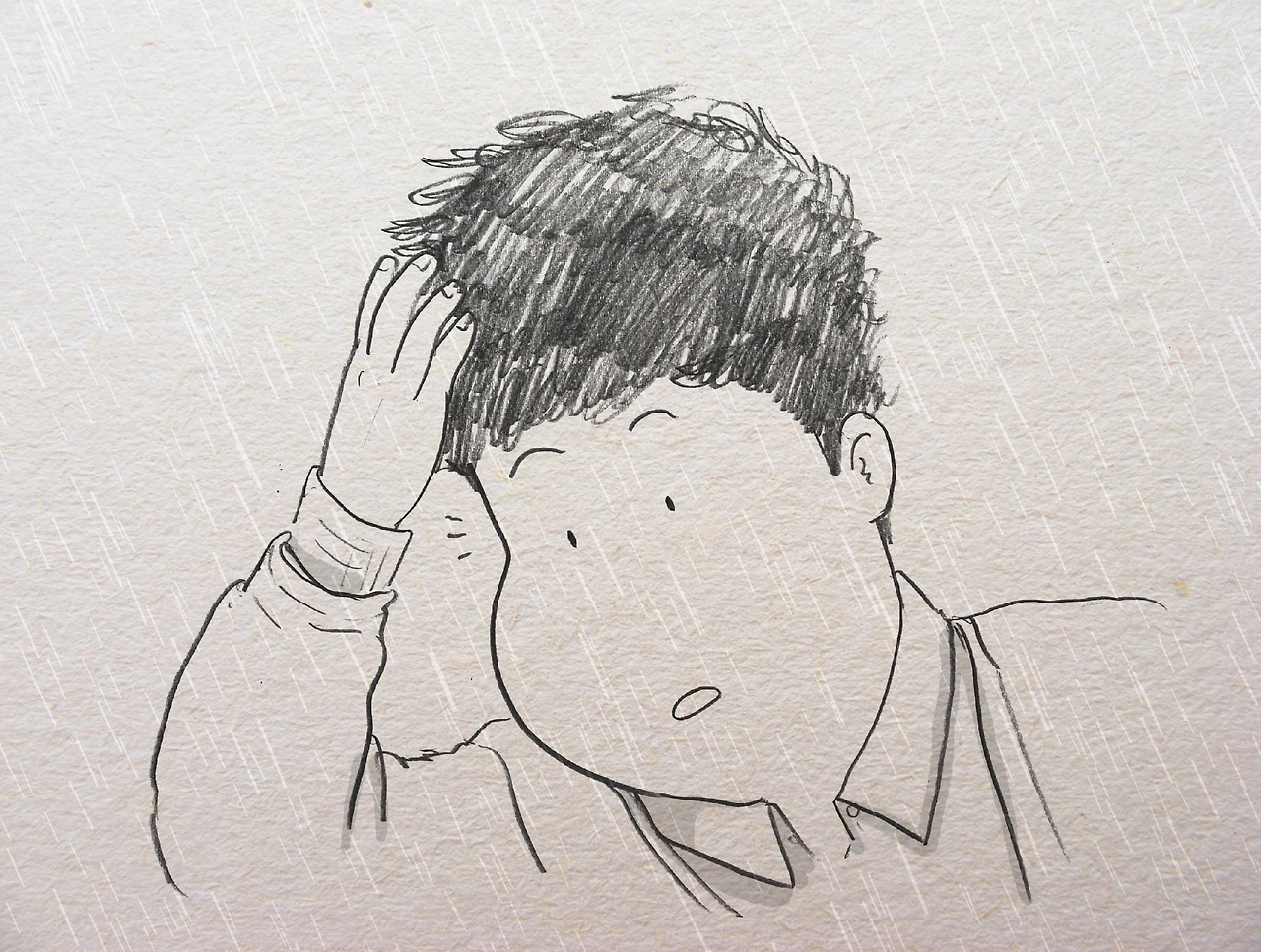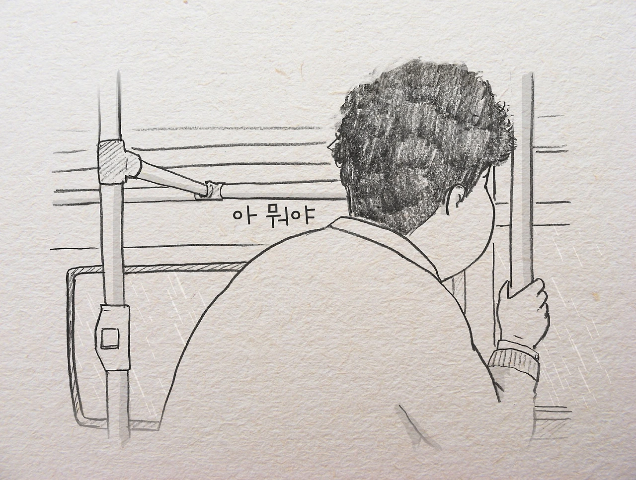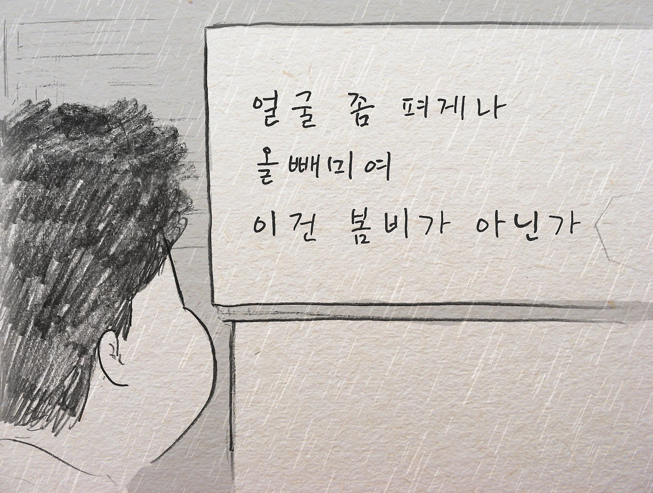 눈에 자꾸 들어가는 빗물을 원망하며 인상을 한껏 찌푸리고 걷고 있었는데