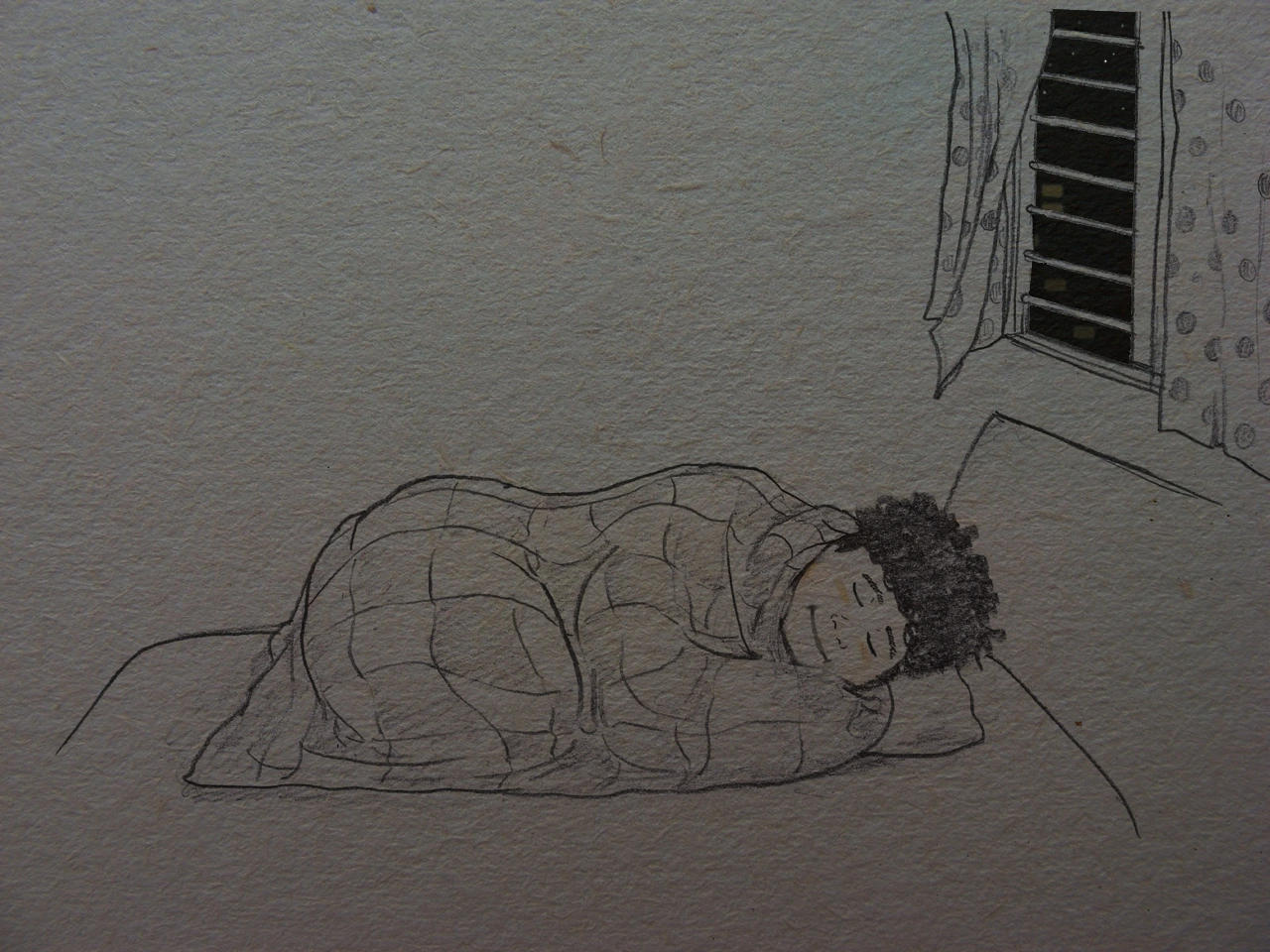 포근한 이불 안에서 몸을 작게 웅크리고 있으면
