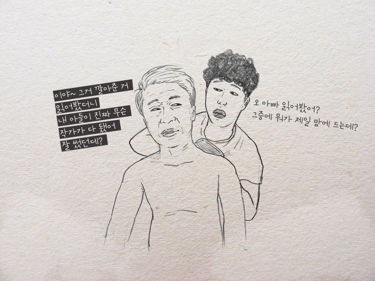 얼마 전에 한번 보시라고 깔아드린 내 그림일기 얘기를 꺼내신다.