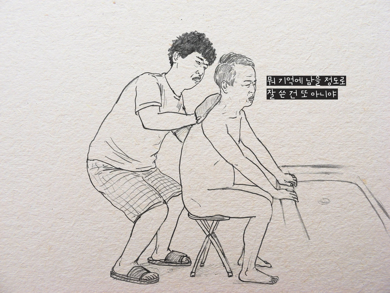 오늘 아버지 목욕하실 때 등을 밀어드리는데