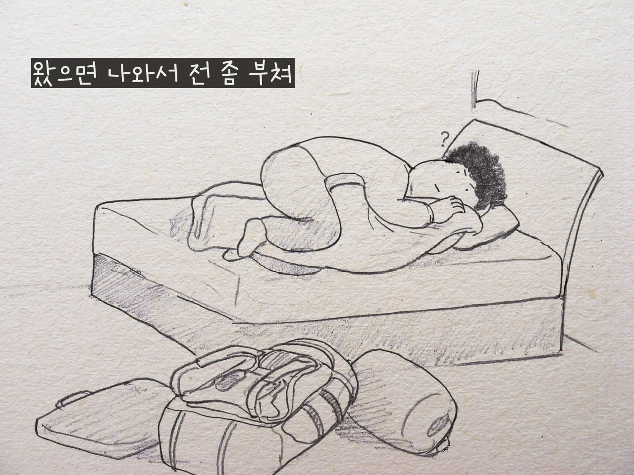 여행기간 동안 어머니의 빨래로 한층 더 뽀송뽀송해진 이불이 날 반긴다.