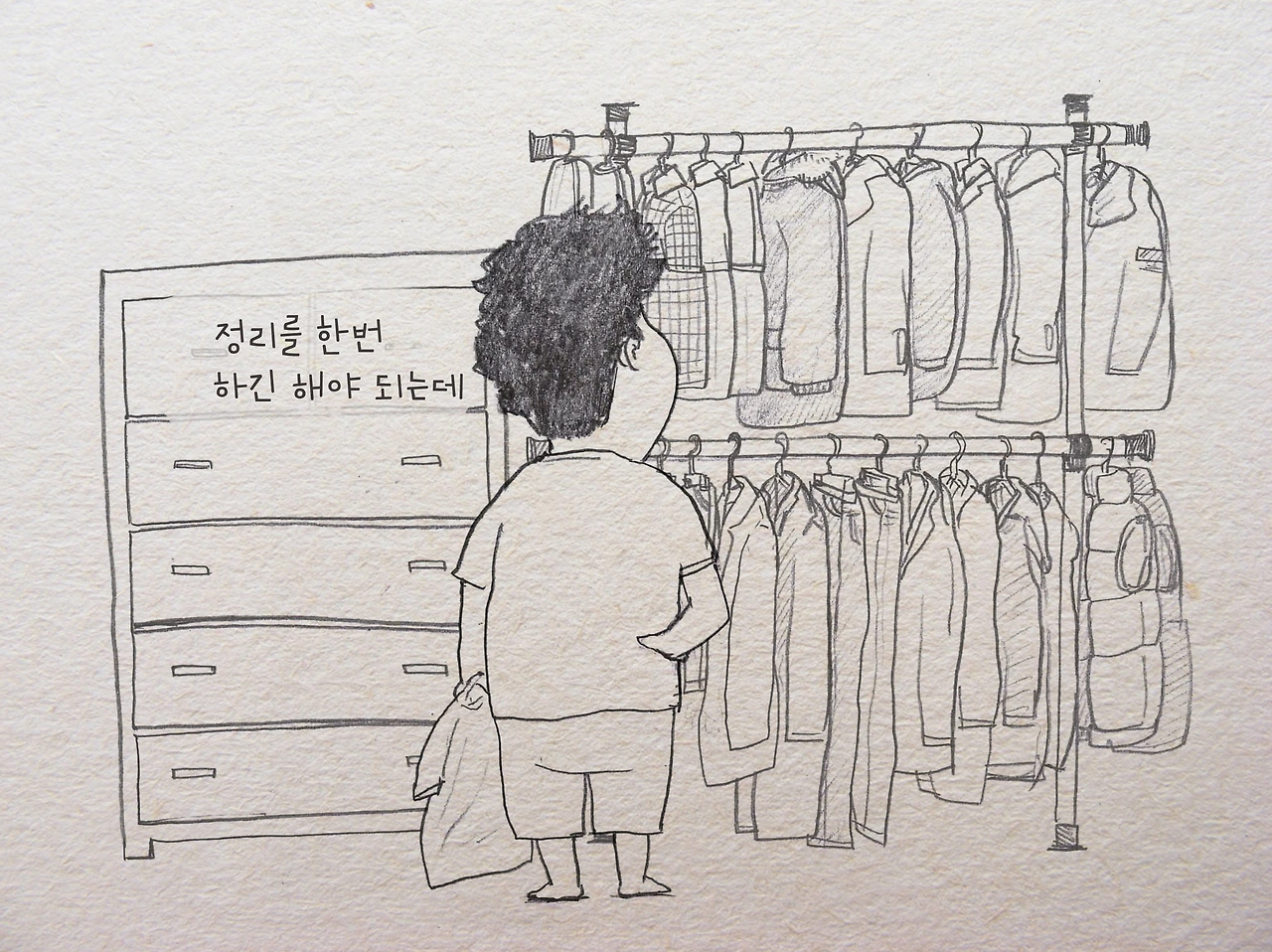 몸도 근질근질하니 오늘이 날이다 싶어 일단 오랫동안 안 입은 옷이랑 안 맞는 옷은 버리려고 마음먹었는데