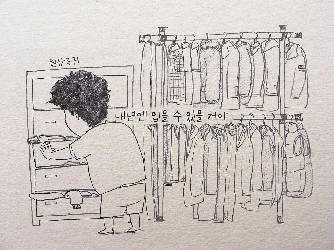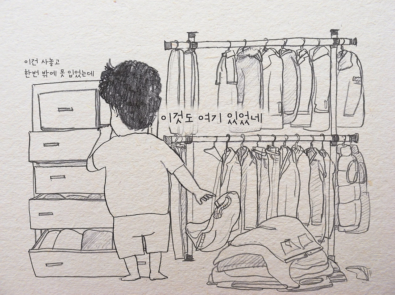 왠지 내년엔 입을 것 같고, 살 빼면 맞지 않을까 미련을 못 버려 오늘도 고스란히 서랍으로 들어가 버렸네.