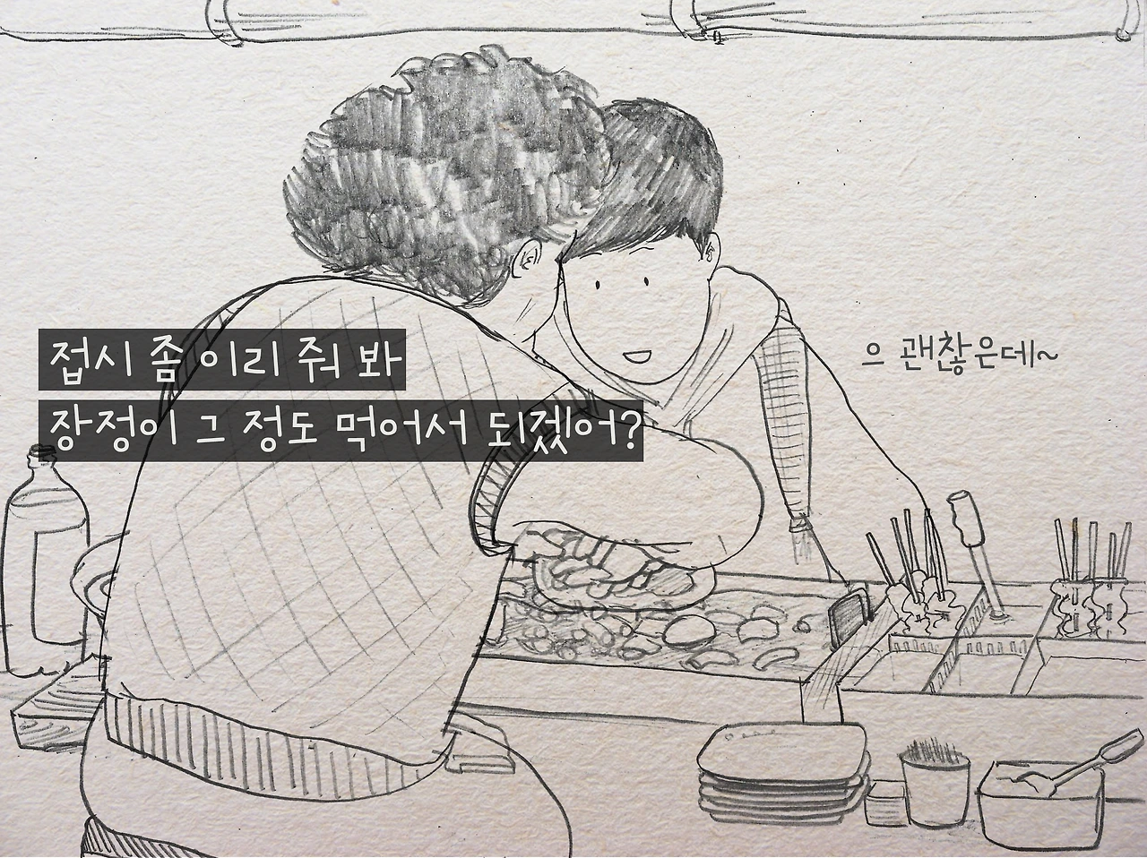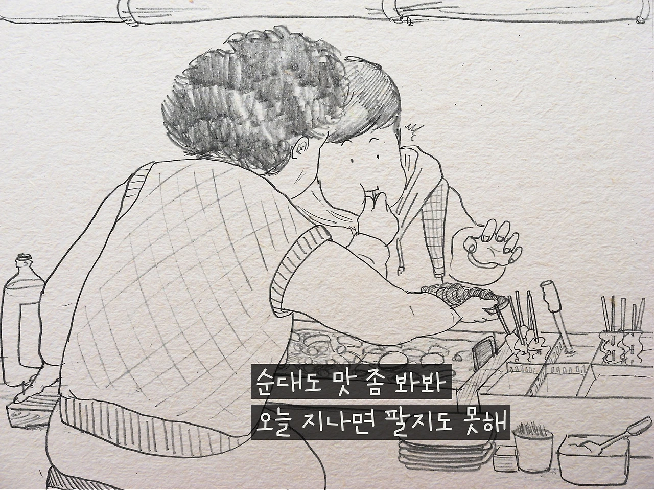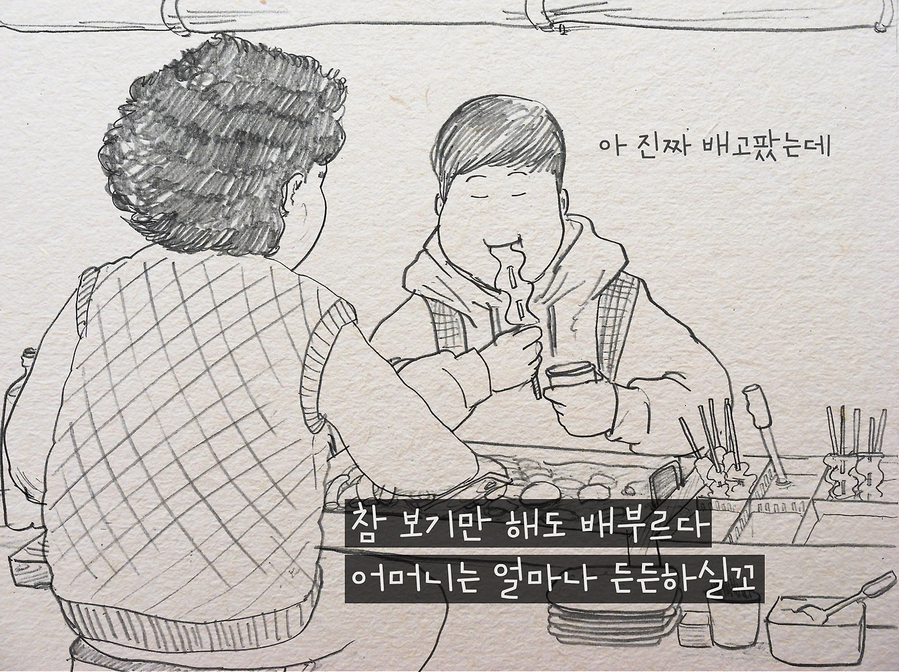 아들 보는 거 같다며 먹는 것만 봐도 배부르다는 아주머니는 장사가 끝날 시간이 되었는지 자꾸 먹을 것을 퍼주셨다.