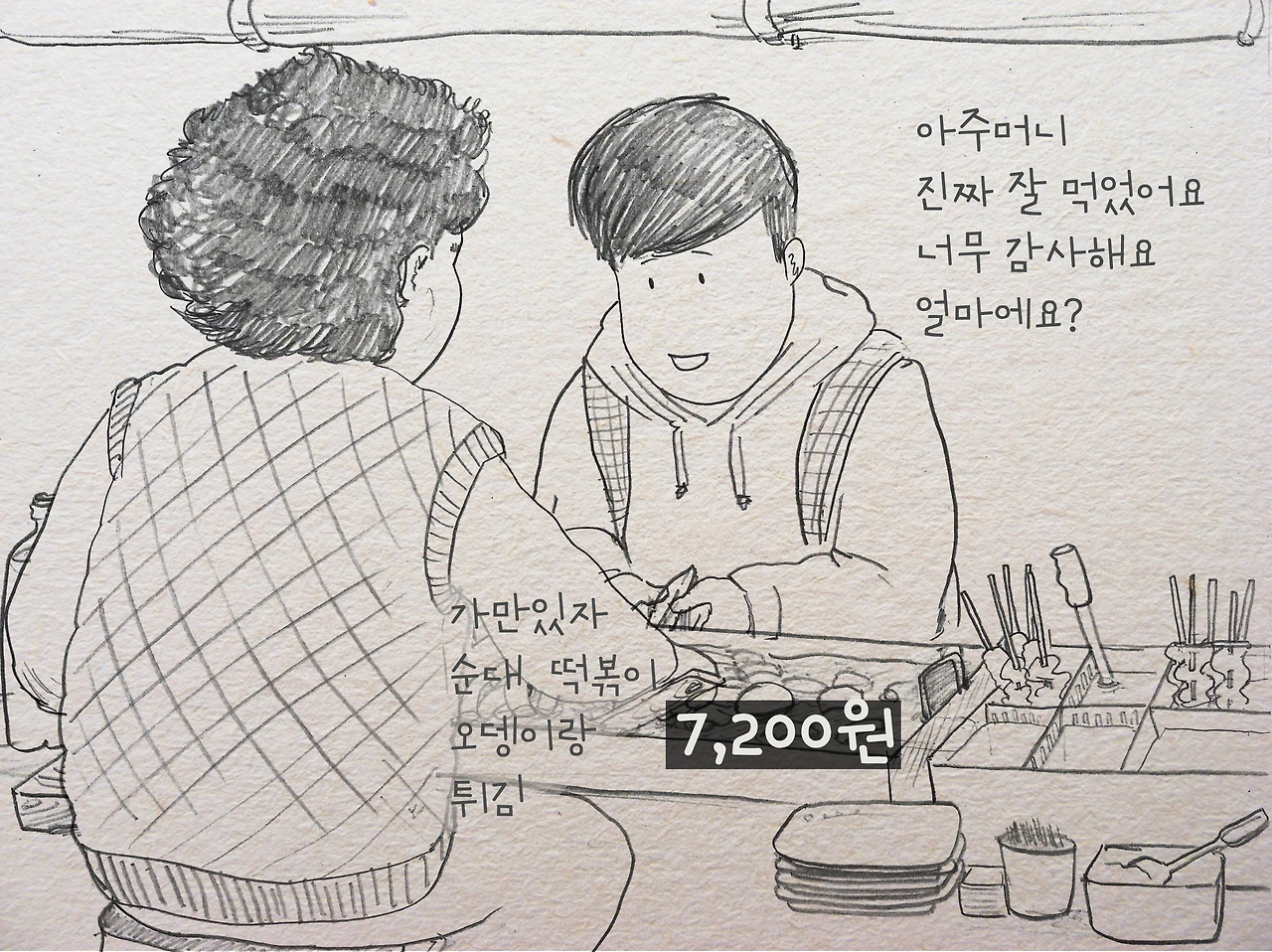 학원이 대중교통으로 2시간 거리여서 시간이 안 맞는 날은 끼니를 편의점에서 대충 때우곤 했는데, 그날 밤엔 수업이 끝나고 너무 허기져 역 앞에 떡볶이를 사 먹게 됐다.