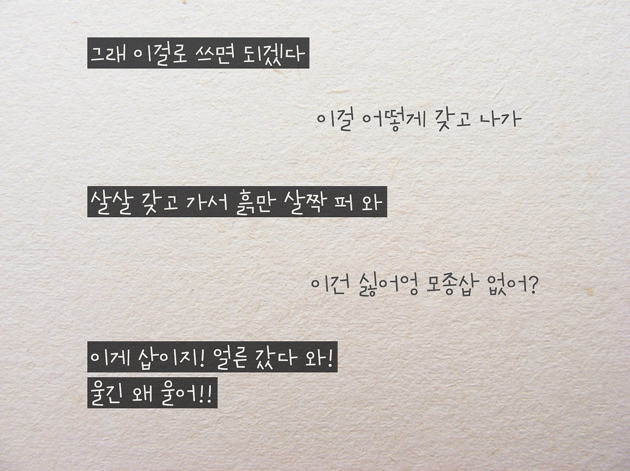 길에서나 산에서나 다 나만 보는 것 같아 흙을 푸면서도 눈물이 그렁그렁했다.