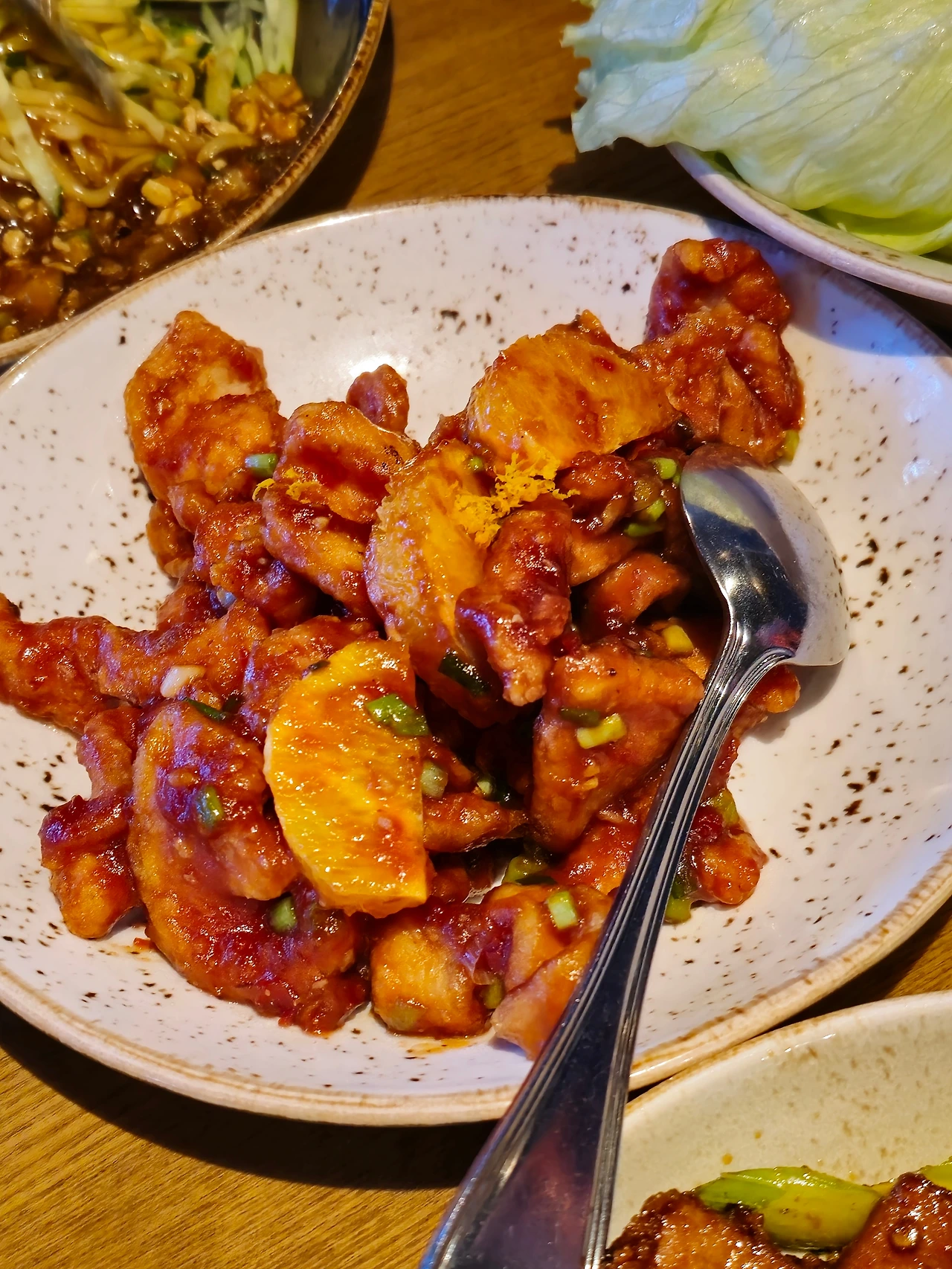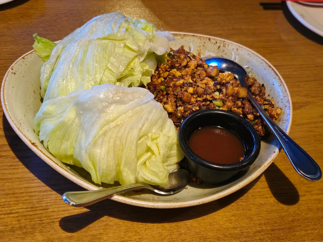 기본으로는 창스 치킨 레터스 랩이 제공된다. 메인으로는 몽골리안 비프와 시추안 비프, 식사로는 탄탄면으로 결정했다. 그러나 4명이서 갔지만, 다들 배가 어느 정도 고팠기 때문에 오렌지 치킨과 팟 타이를 추가했다.
