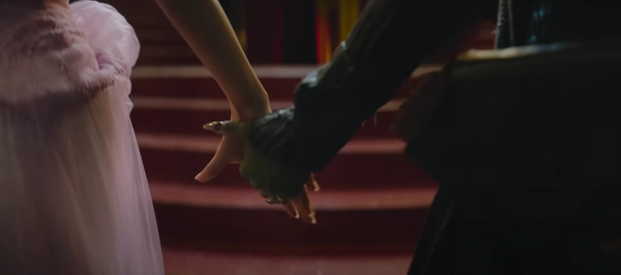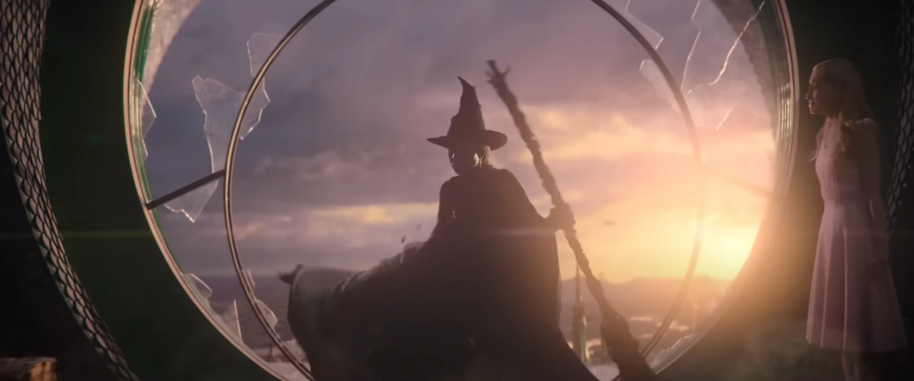 영화 초반에는 서쪽 마녀 엘파바가 죽는 장면으로 시작한다. 오즈의 마법사 스토리의 가장 끝부분이며 그 소식이 백성들에게 전달되며 첫 곡이 시작된다. 그때 장면 구성이나 글씨체 등은 1939년에 개봉한 오즈의 마법사를 오마주 했다. 백성들은 서쪽 마녀가 죽어 신나지만, 착한 마녀 글린다의 표정은 막 밝지만 못한다. 곡이 끝나가고 퇴장을 하려던 글린다에게 누군가 엘파바와 글린다가 서로 알았지 않냐고 물어보면서 과거 회상이 시작된다. 출생의 비밀부터 이야기가 시작된다. 어린 시절 가족과 주변 사람들에게 구박받으면서 곰인 유모가 키워주는 장면이 나오는데 이는 뮤지컬에는 없는 앞으로 있을 일들의 서사를 쌓는 역할을 잘해줬다.