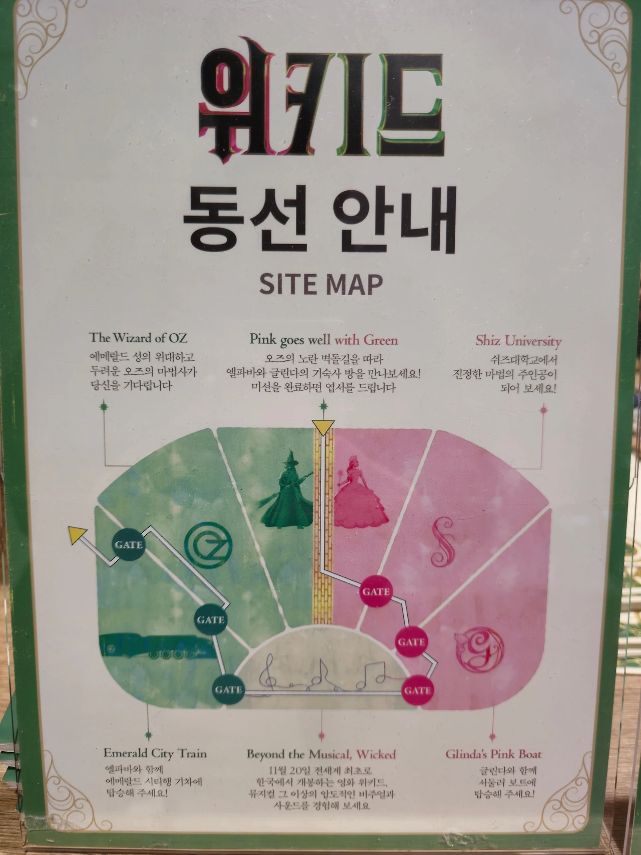 처음 입장하게 되면 양쪽으로 극명하게 대비되는 글린다와 엘파다의 구역이 나뉘어 있다. 각종 소품들이 있어 마녀 모자나 공주 왕관을 써보면서 사진을 찍을 수 있었다.