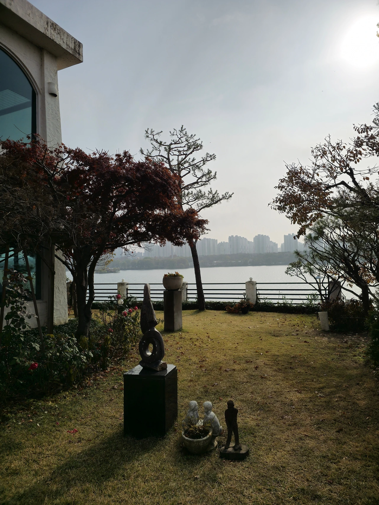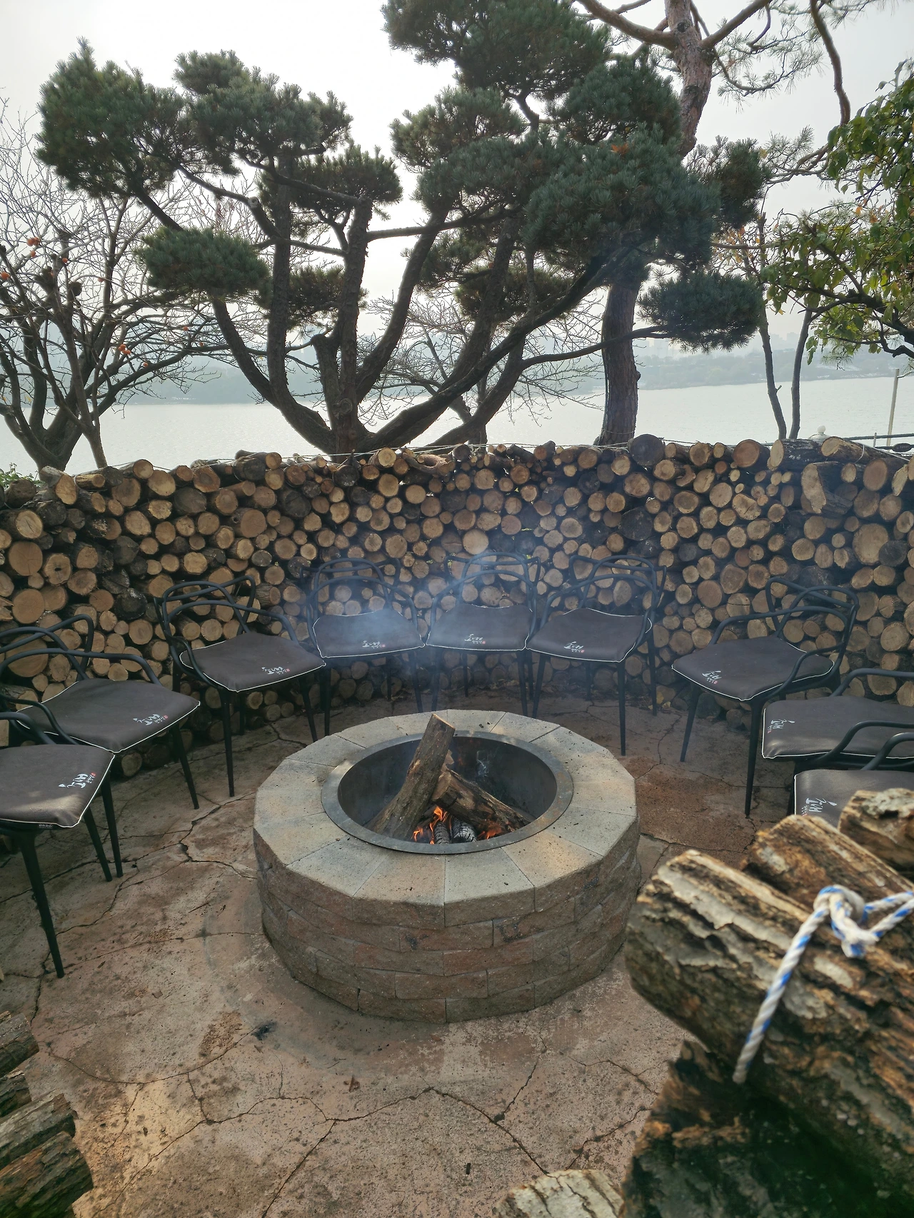식당 앞에는 정원과 모닥불이 있어 운치 있게 한강을 즐길 수 있다. 그렇지만 우리가 간 날은 날씨가 좀 흐리고 추워 우린 즐기지 못했다. 날씨가 좋은 봄, 가을에는 이곳에서 조금 앉아있다가 가도 좋을 것 같다.