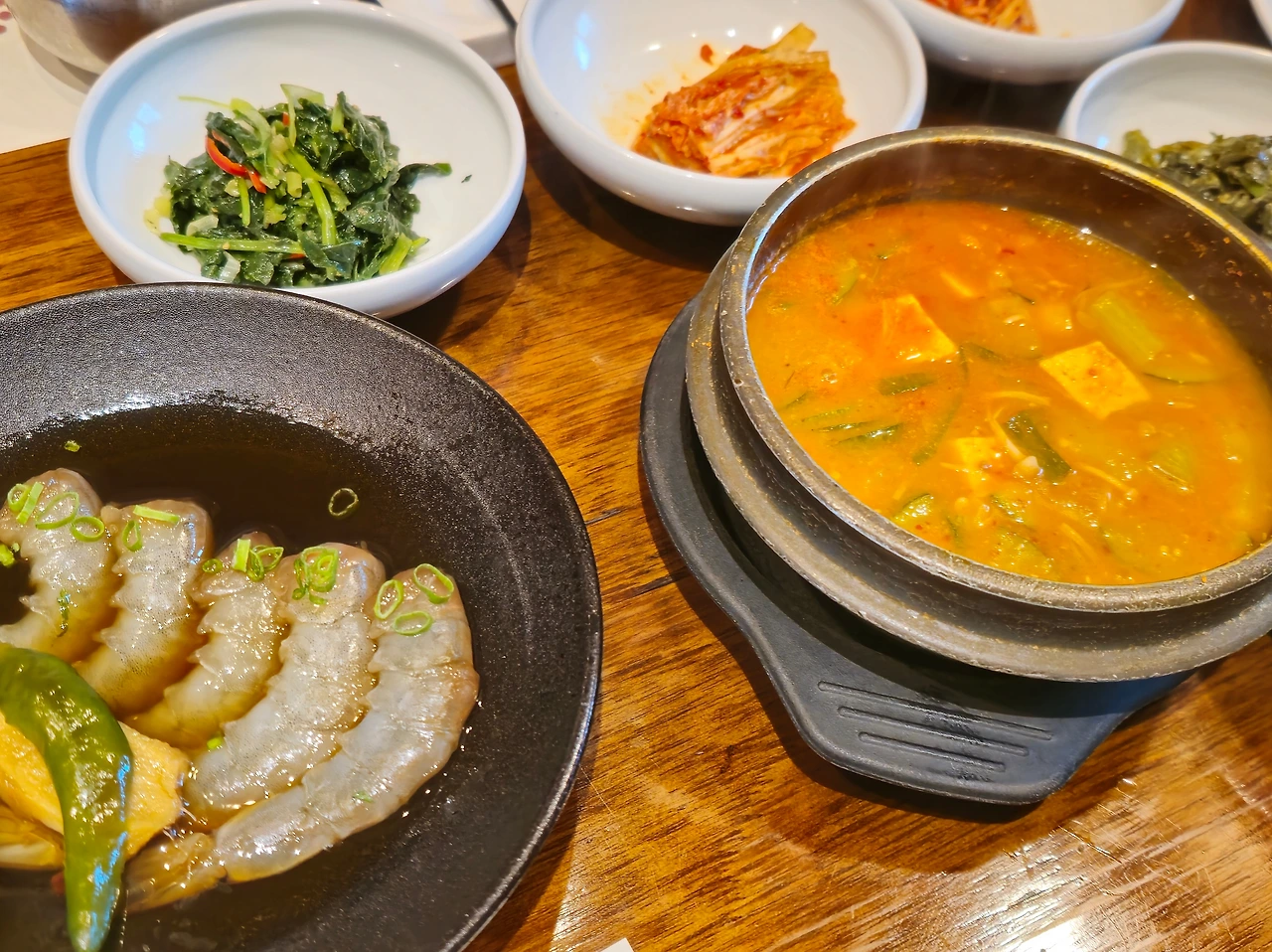 따뜻한 영양돌솥밥과 된장찌개, 5가지 찬, 새우장, 후식