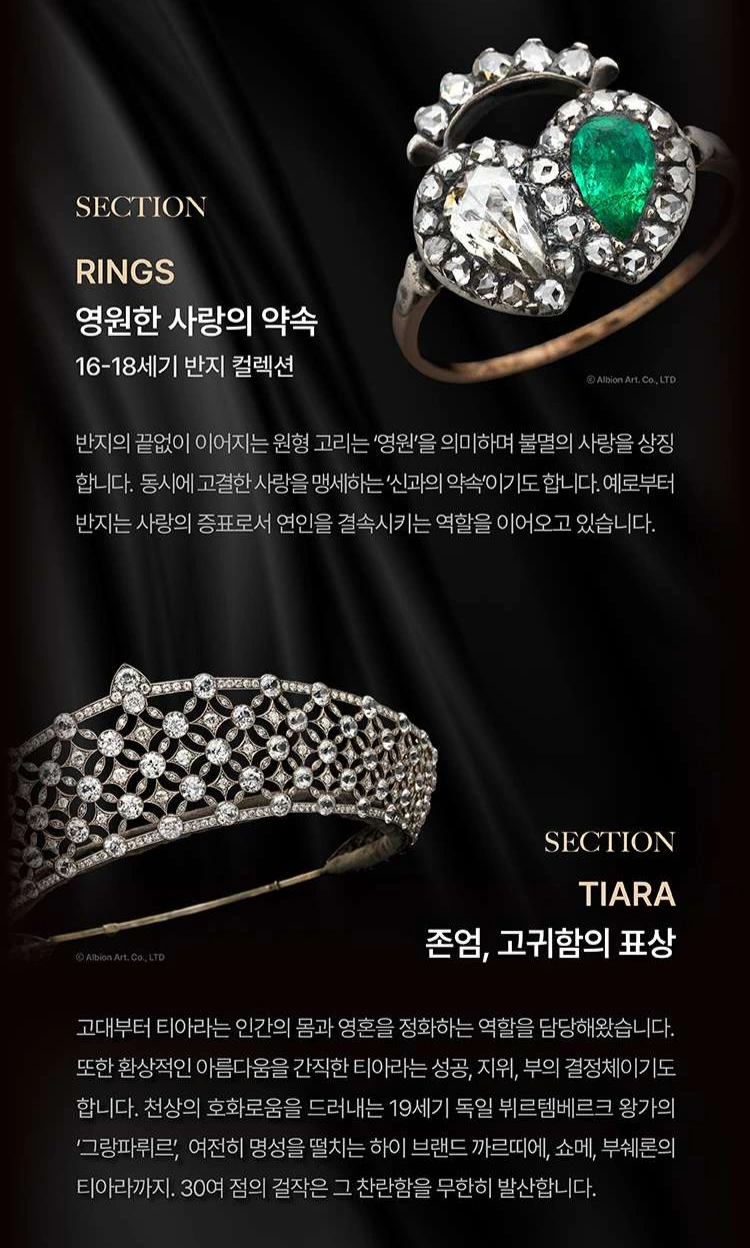 그 뒤에는 반지들, 티아라들을 전시하며 화려한 면모를 뽐낸다.