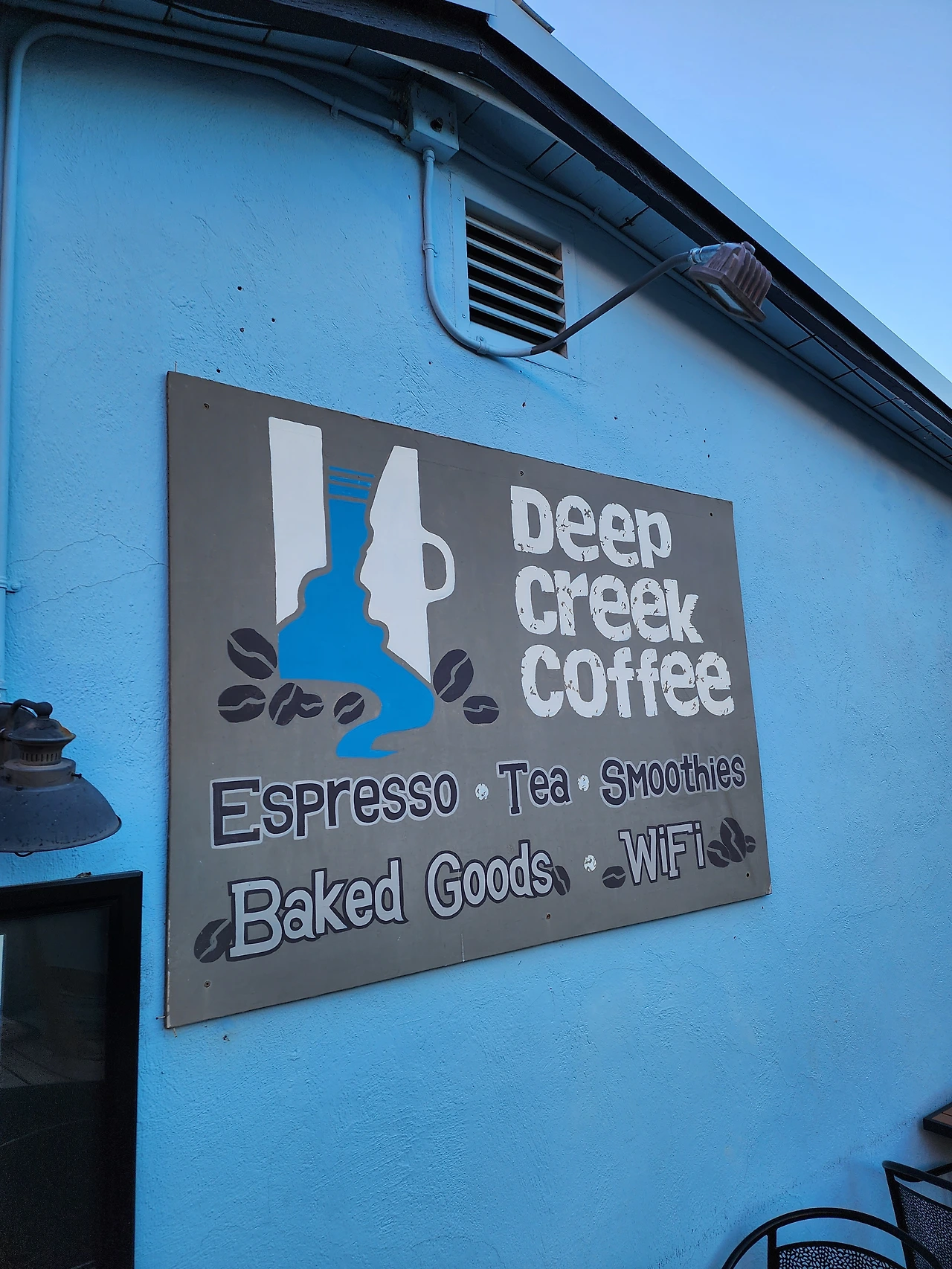 우리 부부는 커피를 정말 좋아한다. 그리고 내 아내는 빵도 정말 좋아한다. 떠나기 전에 마지막으로 하는 것은 바로 카페에서 커피를 테이크아웃하는 일이다. 주변에 다행히도 괜찮아 보이는 카페 'Deep Creek Coffee Company' 있어 바로 방문하였다. 커피와 빵을 사서 바로 다음 국립공원으로 향했다.