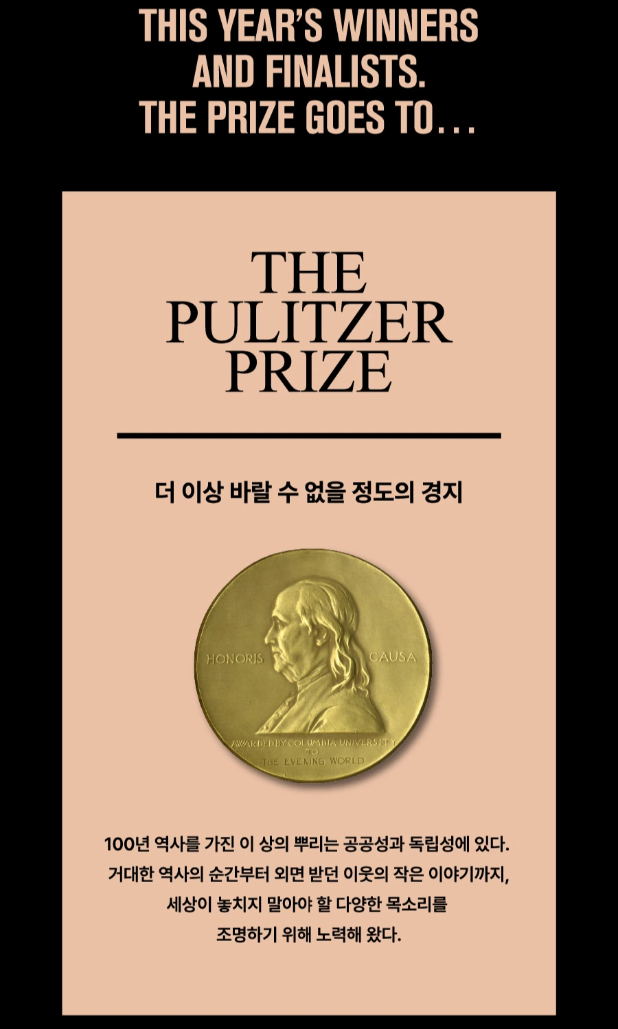 미국의 언론인 조셉 퓰리처(Joseph Pulitzer)가 유언으로 저널리즘에 대한 상을 위해 재산을 남기게 된다. 1917년에 첫 시상식이 열렸으며 그 이후 매년 4월에 시상하게 된다. 현재에는 저널리즘 분야에 14개의 부문, 문학 분야에 6개의 부문, 음악 분야의 1개의 부문으로 시상하고 있으며 비정기적으로 특별 공로상도 수상하기도 한다.