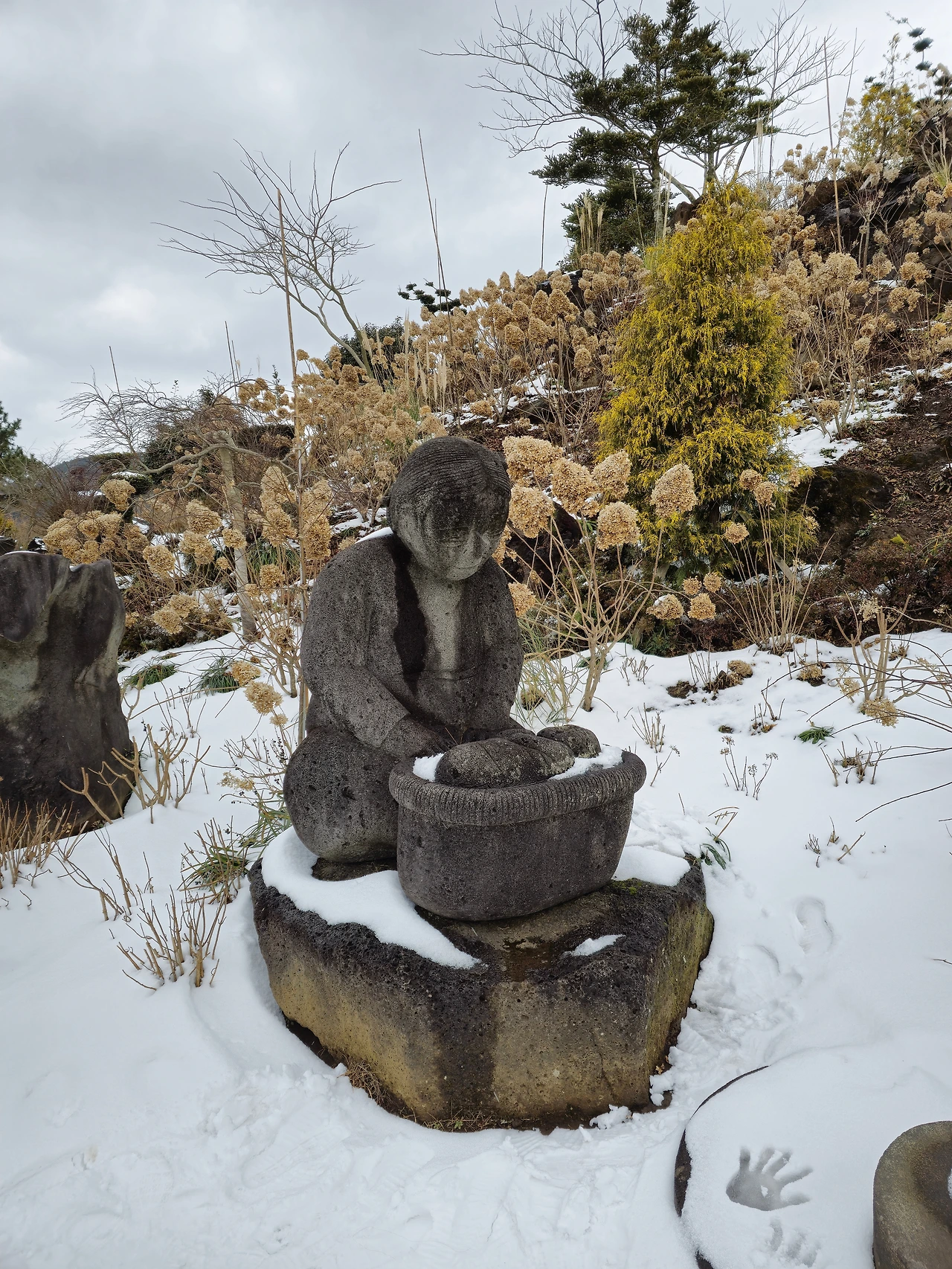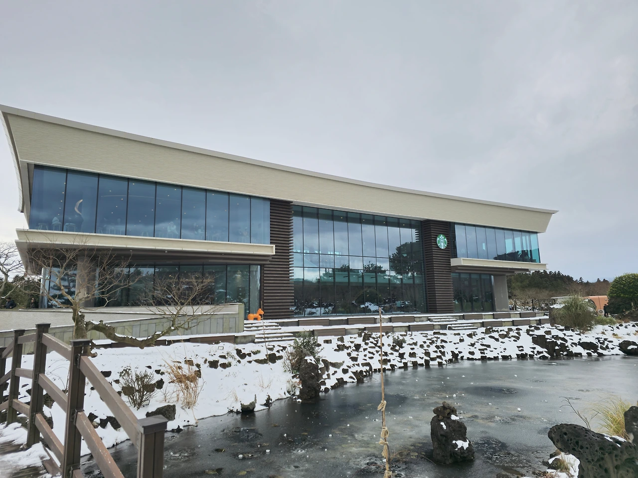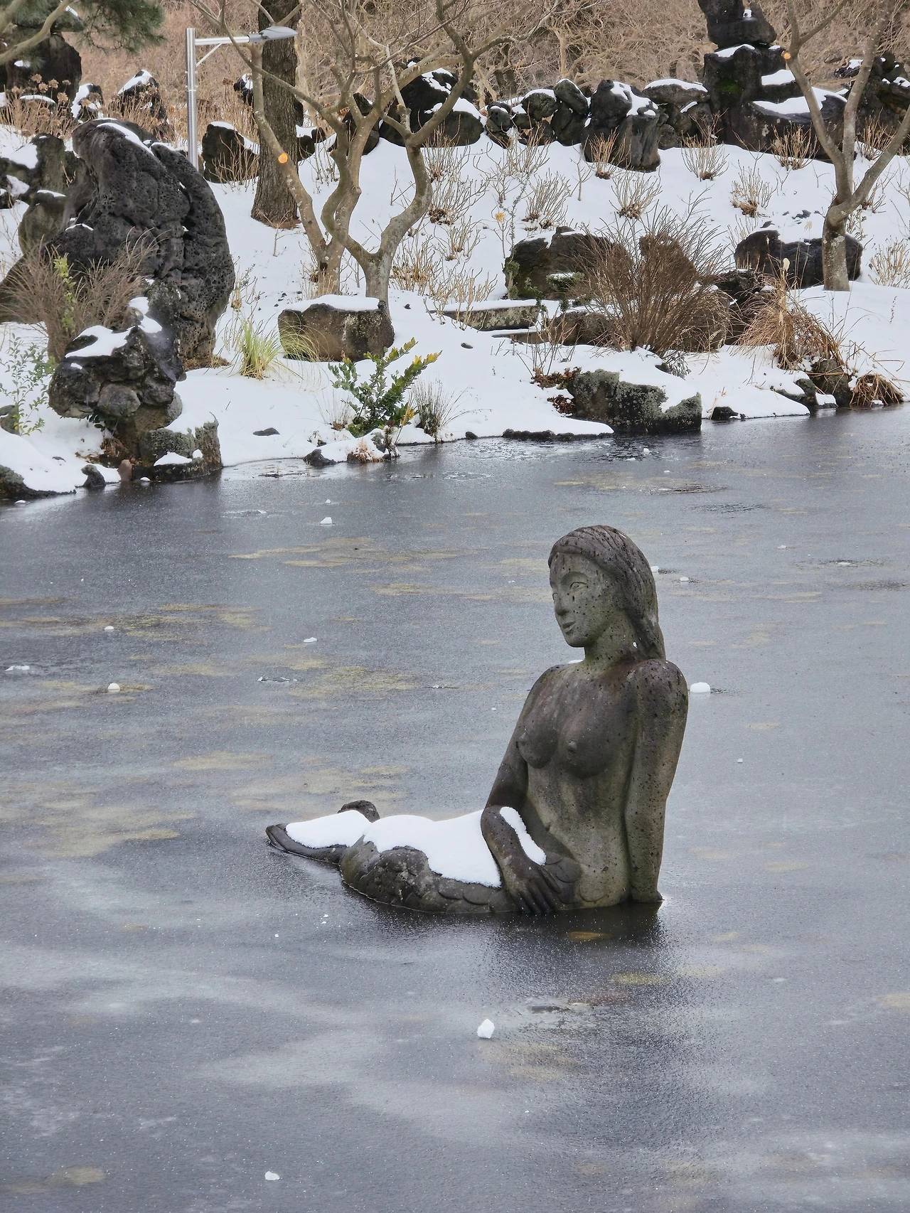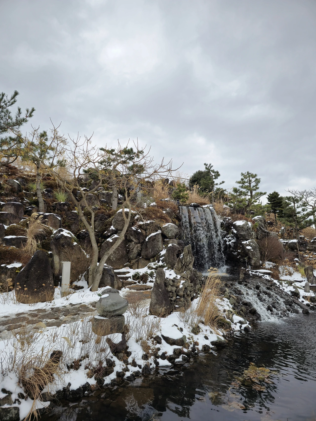 앞에 산책할 수 있는 곳이 있어 걸어보기로 했다. 아직 눈이 많이 녹지 않아 조심하면서 돌아봤다. 연못을 얼어있었고 동백은 조금 시들어 있었지만 겨울 제주의 여러 모습을 한 번에 볼 수 있었다.