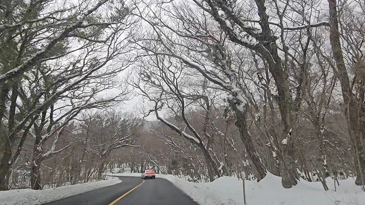 숙소 가는 길 산 길을 통해 갔는데, 마치 북유럽의 풍경처럼 소복이 눈이 쌓여 있는 모습을 통해 계속 감탄하면서 산을 넘어갔다.