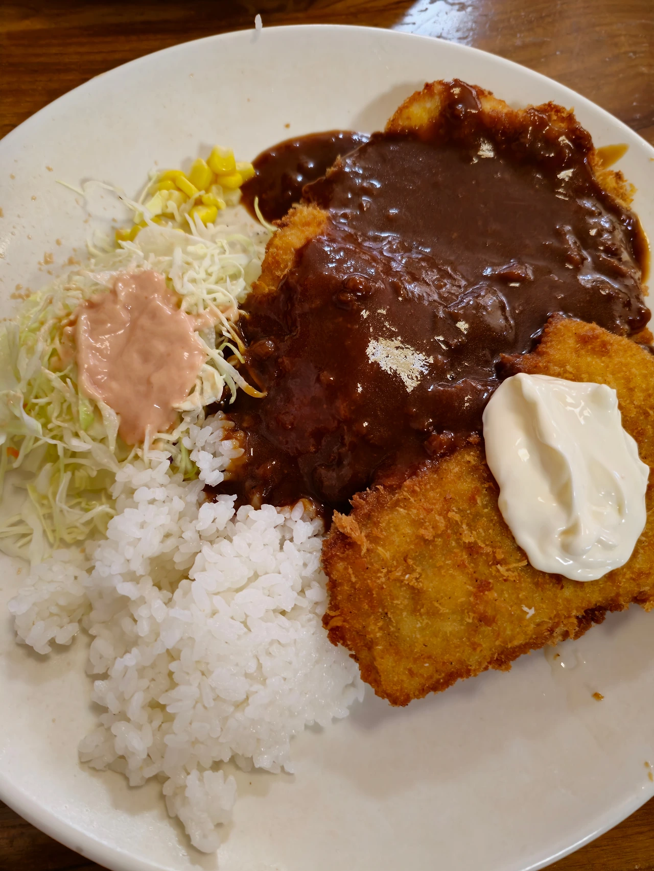 식사 시간이 지났음에도 자리는 거의 차 있었다. 돈까스를 주문하고 나니 옛날 수프가 바로 나왔다. 오랜만에 먹어서 그런지 조금 밍밍하게 느껴졌다. 시간 얼마 지나지 않아 주문한 돈까스들이 나왔다.