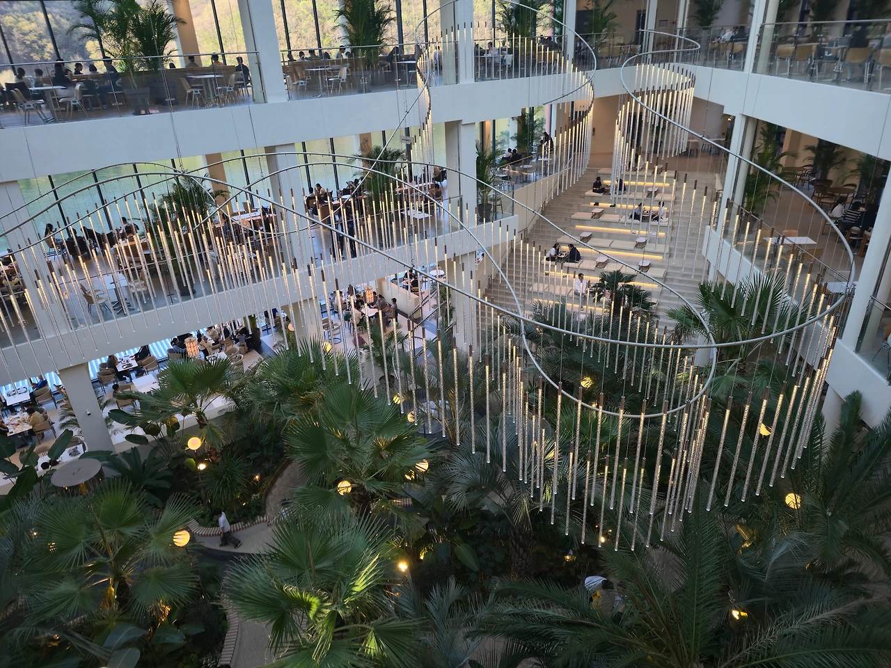 1층에는 중앙에는 푸르른 식물들이 잔뜩 배치되어 있고 층고는 다 뚫려 있었다.