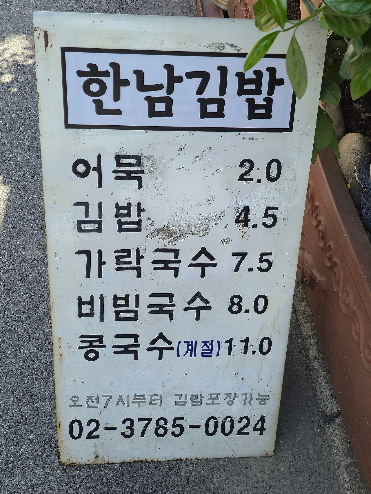 메뉴는 간단하게 몇 가지밖에 없다. 어묵, 김밥, 가락국수, 비빔국수, 여름에는 콩국수까지 판매한다.