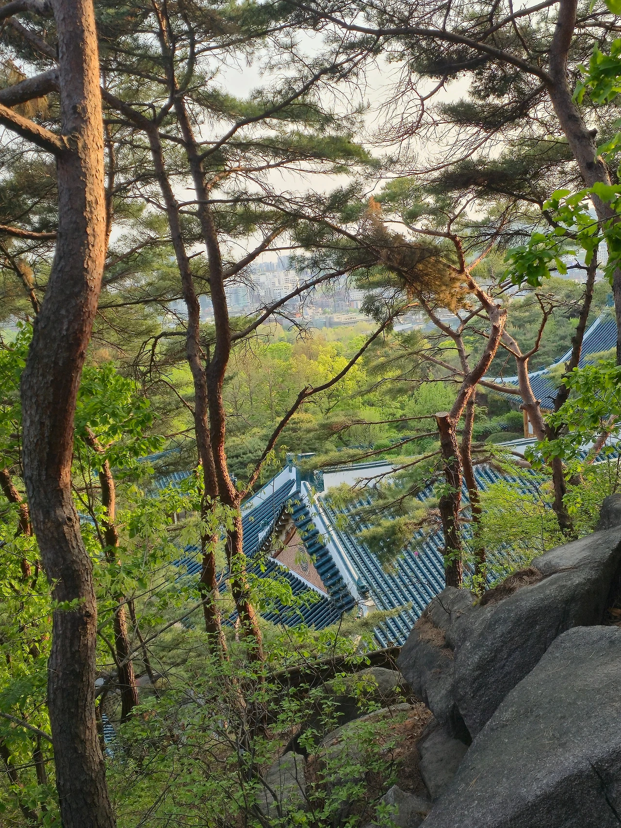 뒤로 산 쪽으로 올라갈 수 있는 산책로가 있었다. 걸으면 경복궁과 광화문 일대가 보이게 된다.
