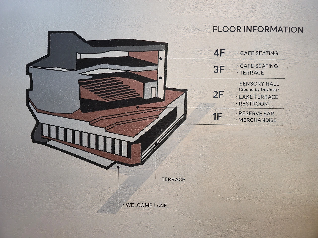 3-4층 전체가 통창으로 모든 좌석에서 강을 볼 수 있었지만 자리 자체가 많진 않았다. 드비알레의 스피커로 음악이 나오는 프리미엄 매장이라는 느낌이 들었다.