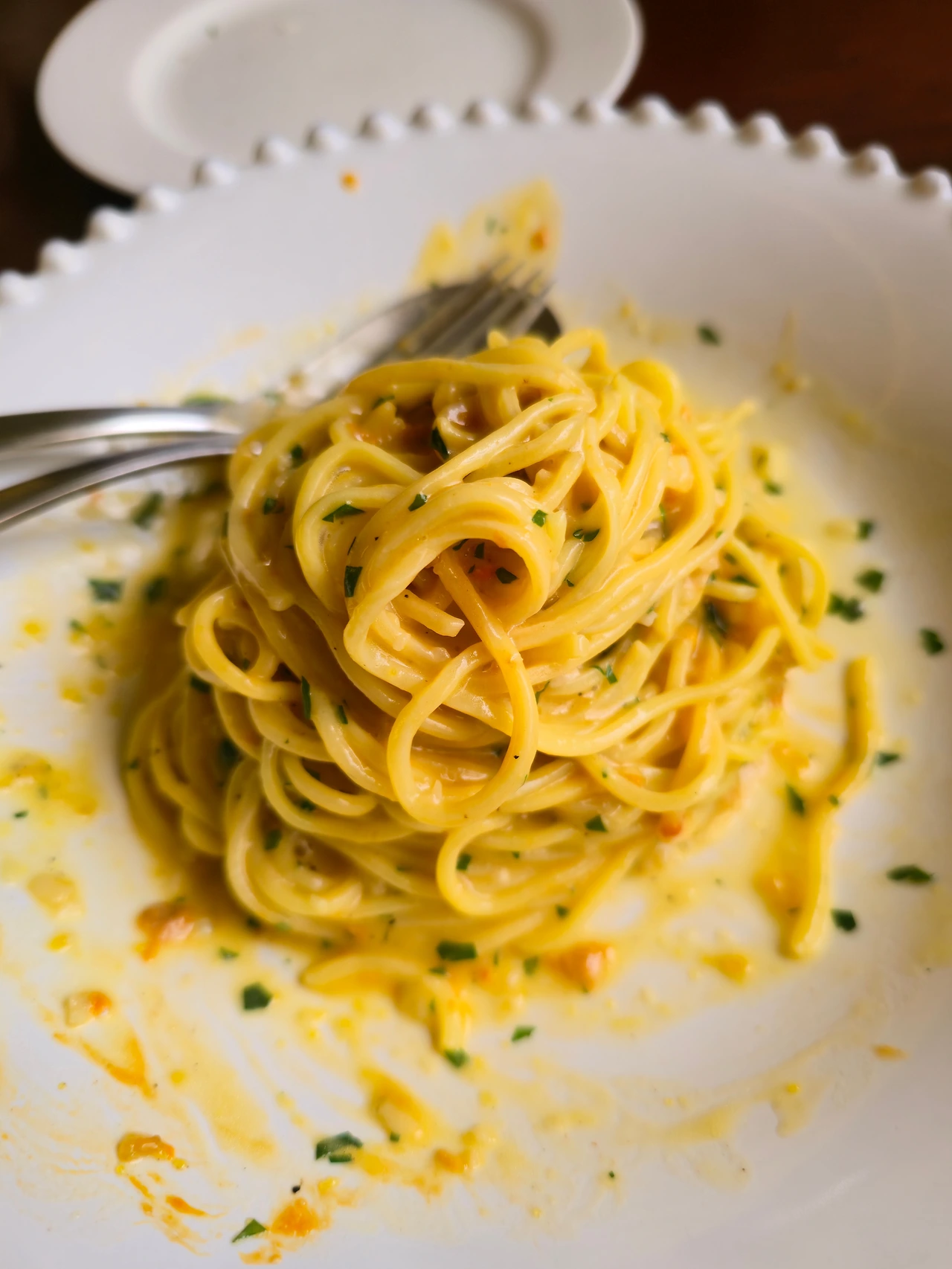 피자는 화덕으로 구워주는 것 같았다. 간단하게 먹을 것이라 프로슈토 루꼴라 피자 하나랑 성게알과 어란 파스타를 주문하였다. 스테이크는 오리 스테이크만 있었는데 계속 연구하면서 메뉴를 개발 중이라고 했다.