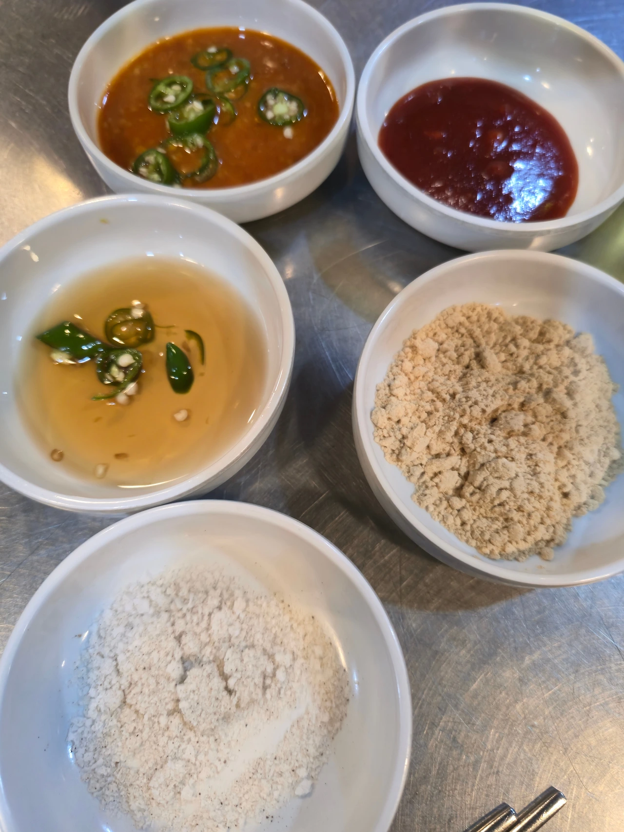 같이 먹을 수 있는 다양한 소스와 가루들이 제공되어서 소금구이로 먹어도 충분히 다양한 맛을 느낄 수 있다.