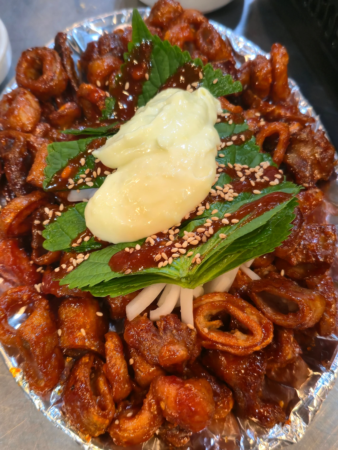 막창은 소금구이와 양념구이 두 가지 종류로 주문할 수 있다.