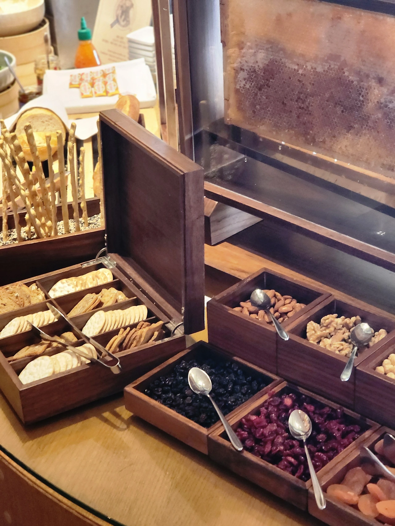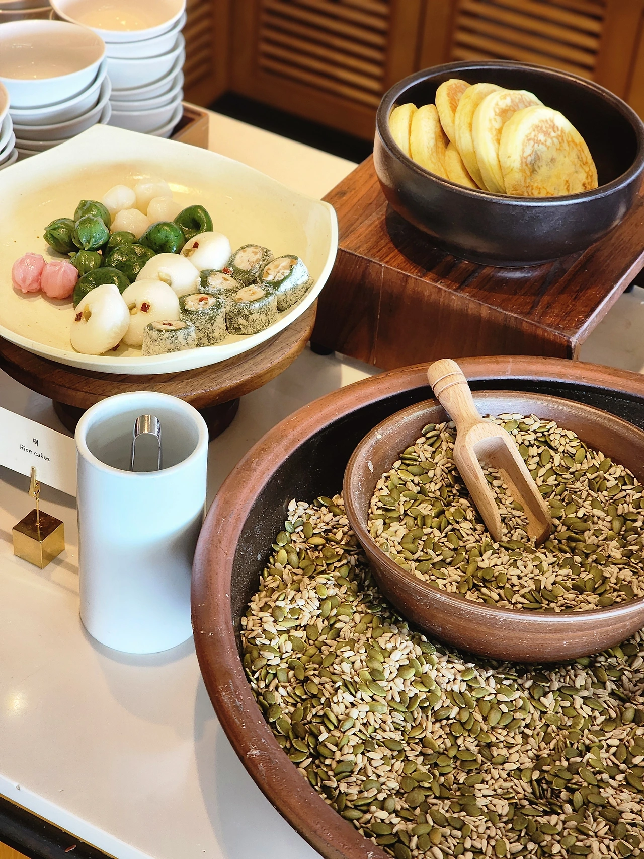 와인이나 맥주를 좋아하는 사람들을 위해서 안주로 먹을 수 있는 치즈와 핑거푸드도 준비되어 있다. 이렇게 메뉴 하나하나 버릴 것 없이 알차게 구성되어 있으면서 다른 호텔 뷔페에 비해 가격도 저렴해서 오기 좋은 것 같다. 정신없이 먹으면서 입이 심심할 때에는 커피를 주문하면 된다. 커피는 캡슐도 있으며 직원분들께 주문도 할 수 있다. 물론 가격은 따로 받지 않는다. 반면, 탄산은 추가 주문을 해야 되는데, 직원분들께서 경고를 한번 주신다.