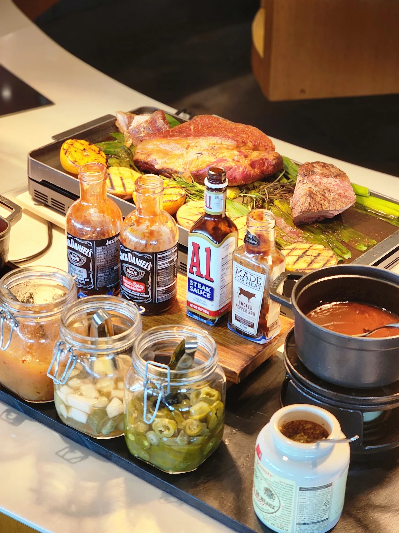 테라스 뷔페의 장점은 음식이 과하지가 않고 알찬 구성을 가지고 있다. 고급스러운 음식은 없지만 편하게 먹을 것은 많이 있다. 그래서 가격이 비싸다는 생각이 들지 않는다. 오히려 여러 고급진 음식이 있는 뷔페는 가격을 엄청 비싼데, 오히려 여러 종류들 사이에서 비싼 메뉴를 많이 못 먹는 경우도 많기 때문이다. 이곳은 각종 스시와 사시미, 고기들, 면과 밥까지 딱 많은 사람들이 좋아할 것 같은 메뉴로 구성되어 있다.