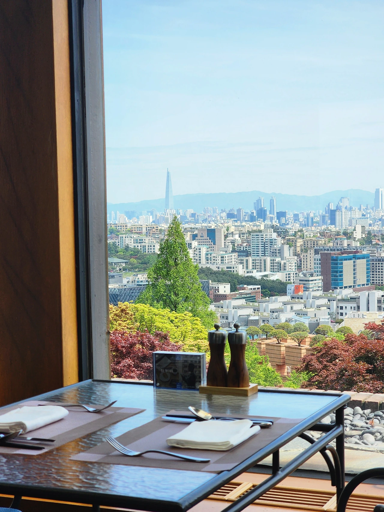 전에도 언급했다시피 서울하얏트에서 좋은 점 중에 하나는 바로 서울 시내가 보이는 뷰라는 것이다. 잠실의 롯데타워, 강남의 무역센터, 그리고 해방촌의 언덕까지 서울의 여러 모습을 한눈에 볼 수가 있다. 창가자리는 보통 2인석이 많기에, 2명으로 일찍 예약한다면, 창가에서 식사를 할 수 있게 된다.