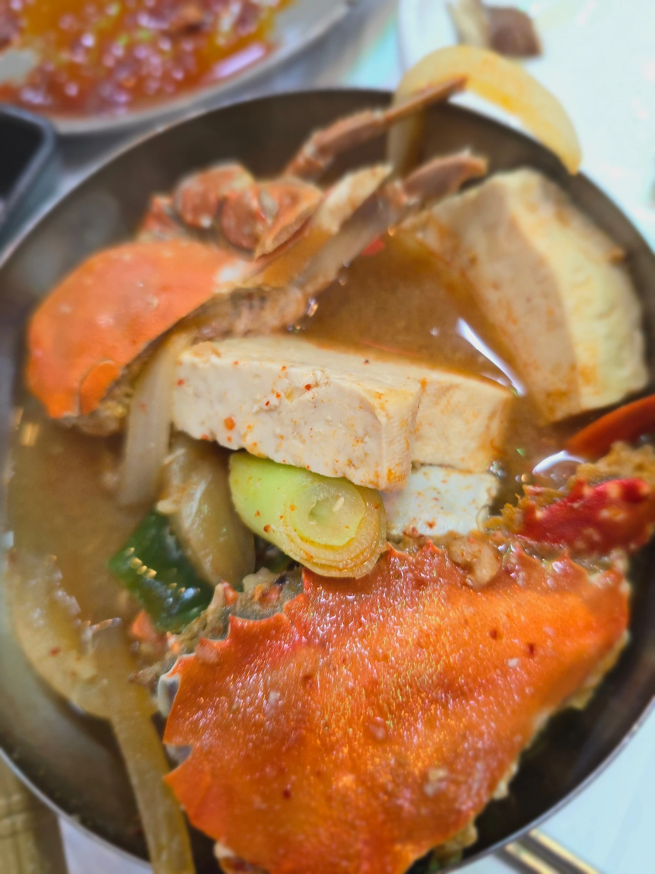 어느 정도 술과 음식으로 배를 채우면 꽃게탕을 시켜보면 그 크기에서 한번 놀란다. 세숫대야에 나오는 꽃게는 철에 따라서는 알이 꽉 찬 꽃게를 넣어주신다. 그 국물을 마시는 순간, 술자리는 다시 처음으로 돌아간다. 얼마나 우려냈는지 상상도 하기 힘든 깊은 맛을 보여 다시 힘내서 즐겁게 술자리가 이어진다.
