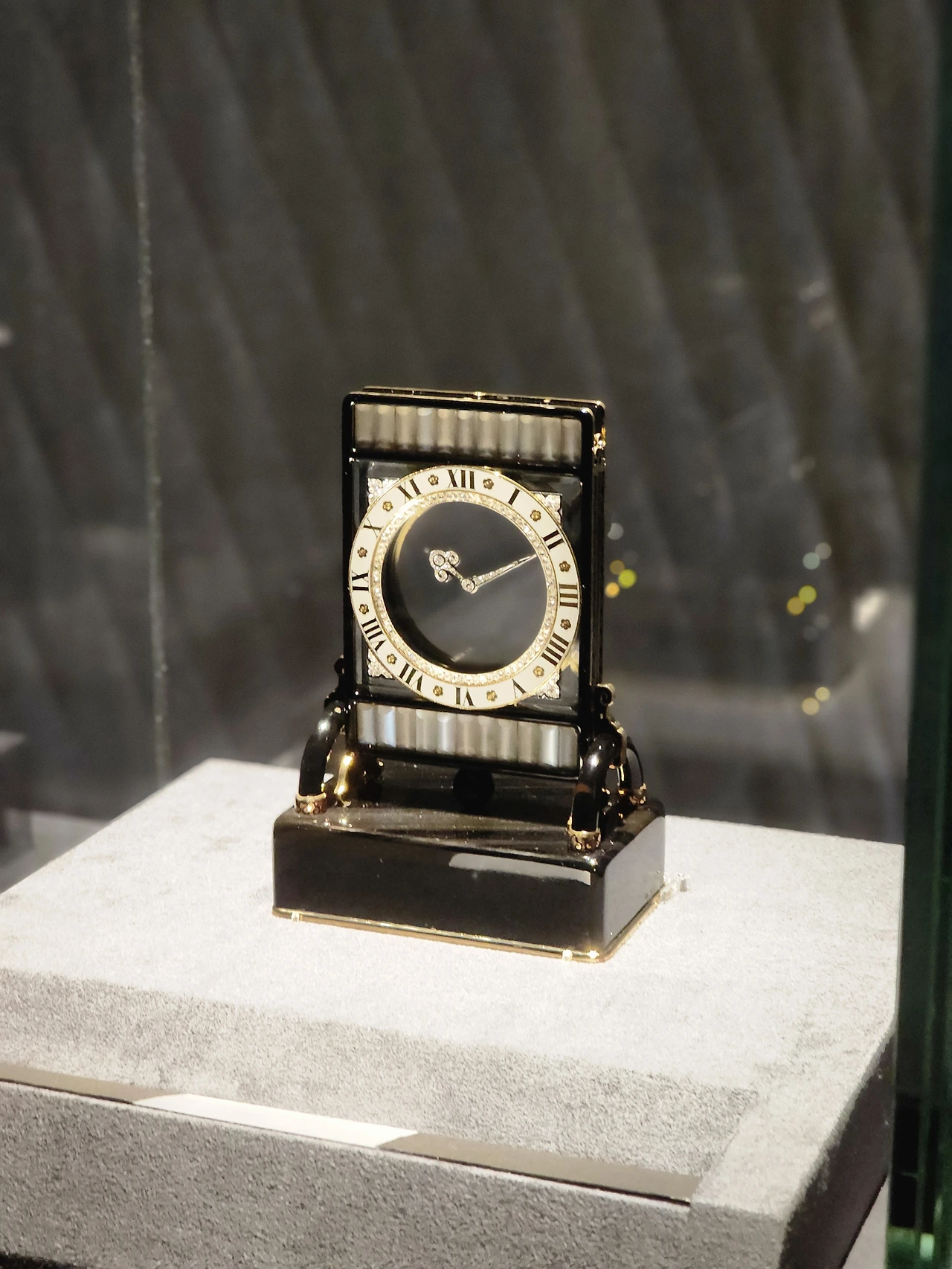 그다음 방은 미스터리 클락과 프리즘 클락이 전시되어 있다. 각 시계마다 흰색 천이 천장에서 떨어져 내려 와 작품 하나하나가 스포트라이트를 받는 듯한 느낌을 받았다.