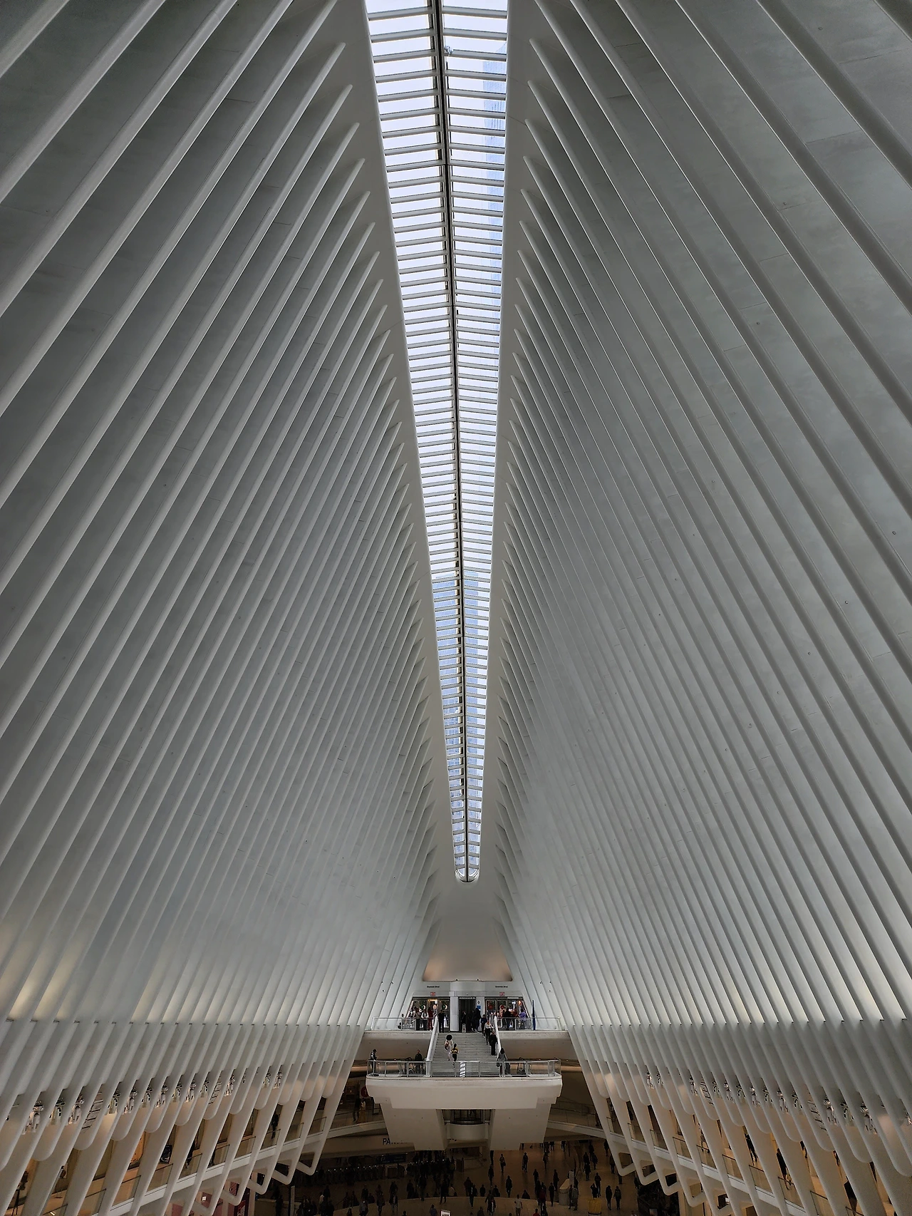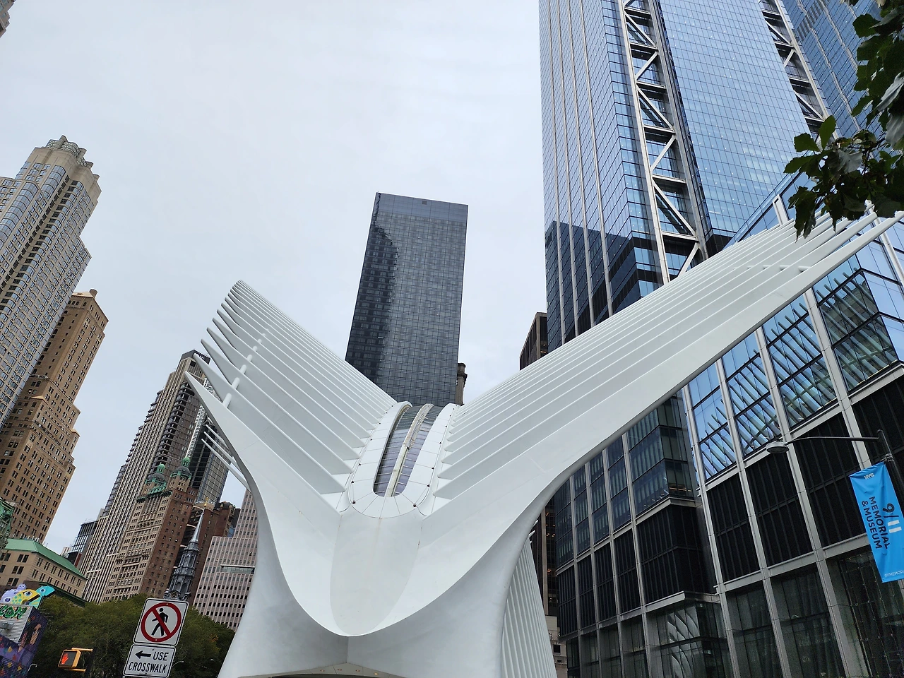 공원 바로 옆에 눈에 매우 띄는 건축물이 있다. Santiago Calatrava가 설계한 오큘러스 센터이다. 이곳은 뉴저지와 맨해튼의 지하철이 다 지나다녀 유동인구 자체가 많은 곳이라고 한다. 911 테러를 기리며 만들어진 건물이다. 생선가시와 같은 구조물이 매우 특징적이다.