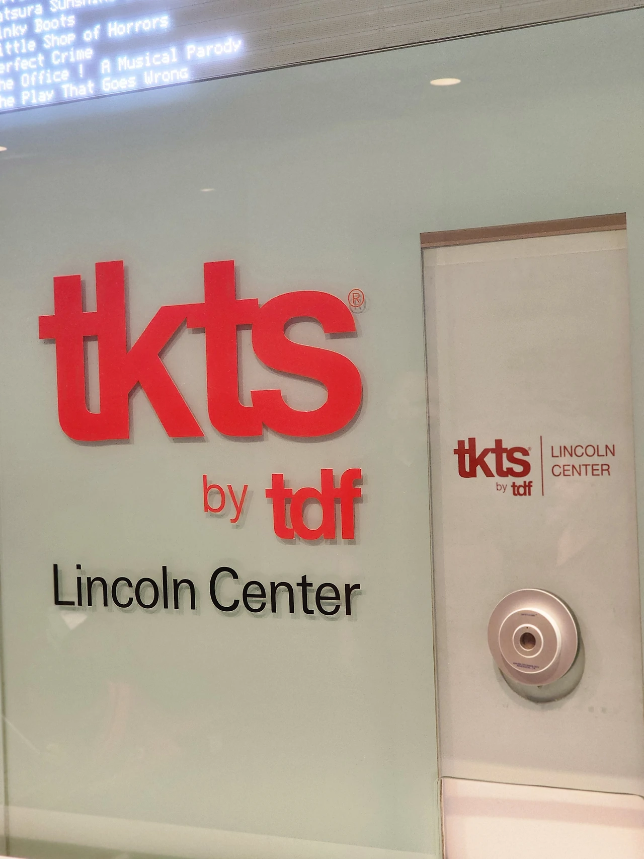 TKTS를 통해 당일 표를 싸게 살 수 있었다. 사람이 많을 때는 오픈런을 해야 할 만큼 인기가 있다고 해서, 자유의 여신상을 뒤로하고 지하철에 탑승했다. 뉴욕에는 타임스퀘어와 링컨센터 두 곳에 지점이 있다. 지하철로 한 번에 갈 수 있는 링컨센터 지점으로 향했다. 오픈시간에 딱 맞춰서 겨우 도착하여 들어가니 긴 줄은 없었다. 전광판에 구입할 수 있는 공연들이 나열되어 있었는데, 보고 싶었던 라이언킹이나 알라딘 같은 유명한 작품은 없었다. 킹키부츠와 시카고와 같은 한국에서도 공연을 하는 작품들이 있어 분위기가 그나마 좀 밝은 킹키부츠를 예매했다. 정확하게 기억은 안 나지만, 할인률은 30%에서 70% 정도였던 것으로 기억한다. 남아 있는 표 중에서 가장 좋은 자리를 예매했는데 C열이라 앞에서 3번째 줄인 것 같아 기대가 되기 시작했다.