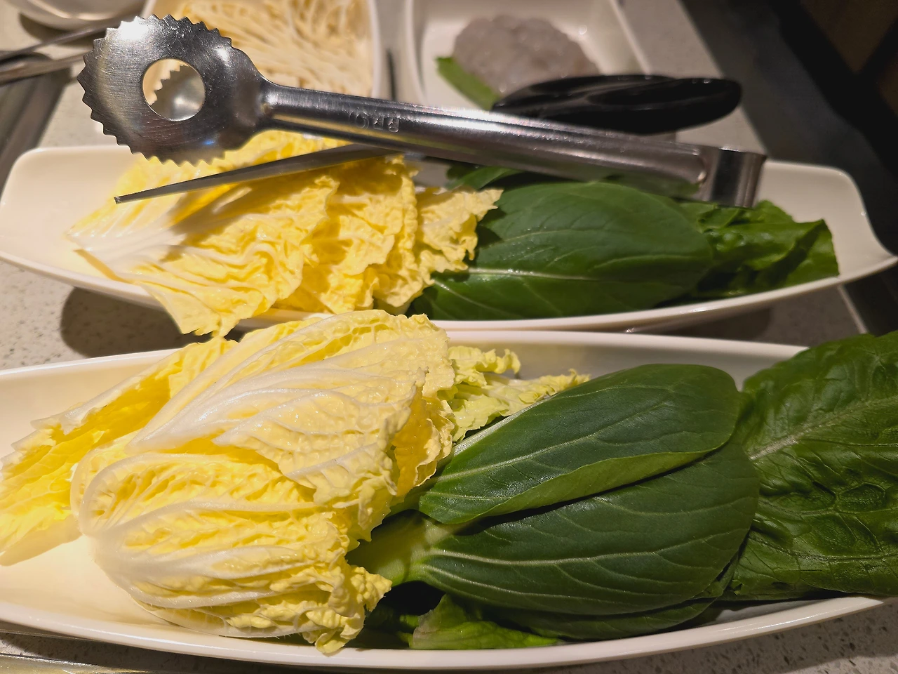 탕을 올려주고 끊는대까지 또 시간이 조금 걸린다. 탕이 좀 끊는다 싶으면 직원이 와서 식전국물 시식을 도와준다. 그리고 거품을 걷어내 주면 식사를 시작하면 된다. 청유마라훠거는 진짜 맛있었다. 얼얼한 매운맛이 일품이었다. 토마토훠궈는 파스타 소스 같은 맛이 났고, 똠양꿍탕훠거는 똠양꿍의 맛이 잘 풍겼다. 삼계탕에는 실제로 닭고기가 여러 조각 들어있어서 뭔가 서비스를 받은 느낌도 들었다.