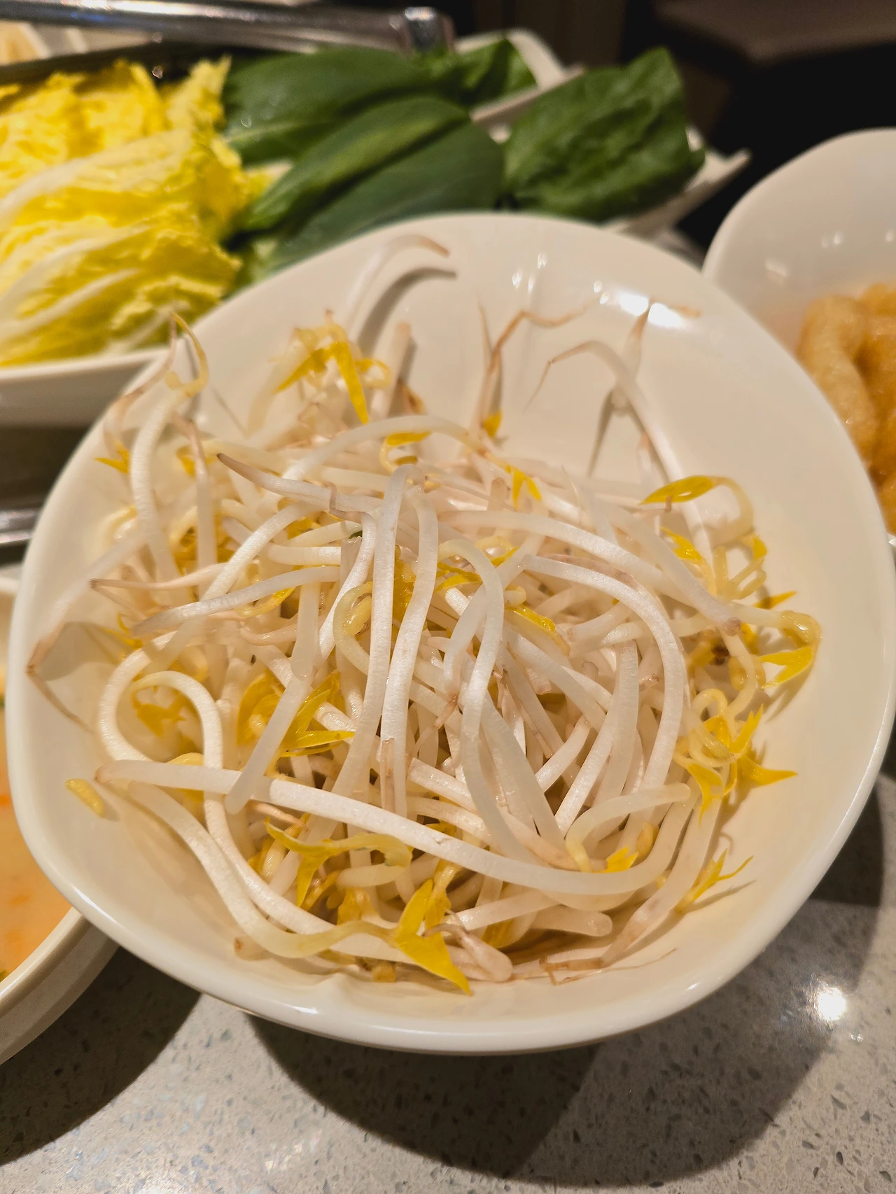 넣는 재료는 취향껏 선택하면 된다. 필수로 넣을 것은 숙주, 야채모둠 정도인 것 같다. 옆 테이블을 보니 두부피튀김을 많이 시키는 것 같았다.