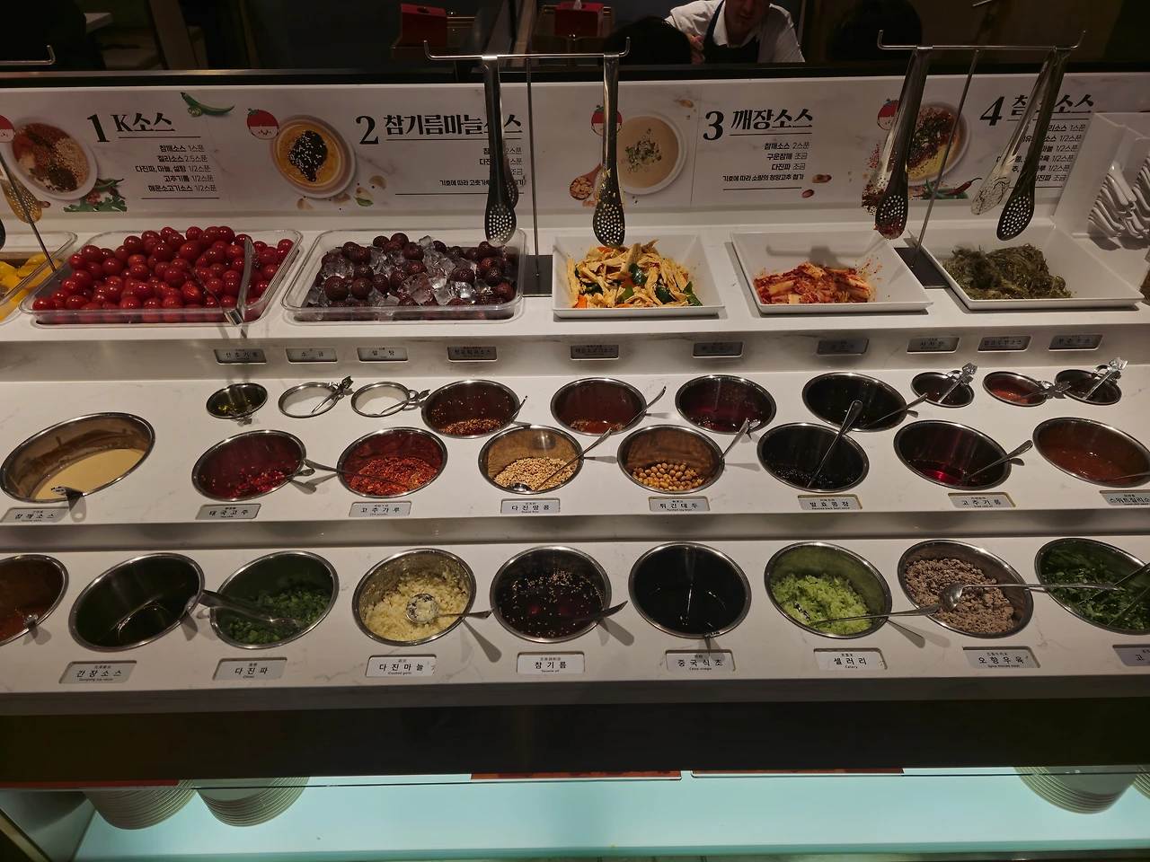 그리고 과일하고 김치, 수프까지 소스 외에 다른 종류도 있었다. 수프는 야채 육수로 오래 끊인 것 같은 건강한 맛이 인상적이었다.