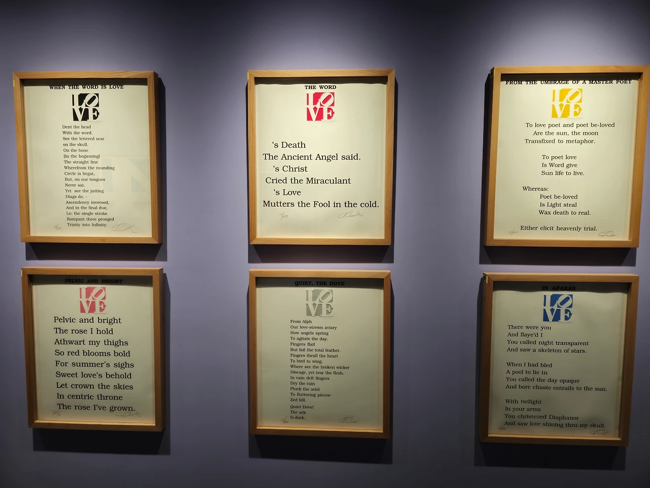 사실 이 사람이 누군지 몰라도 대표작은 모르는 사람이 거의 없을 것이다. 바로 'LOVE'이다. 사랑을 자주 노래하는 작가로 유명하며 사랑의 시들과 함께 콜라보한 작품들도 전 편 전시되어 있었다.