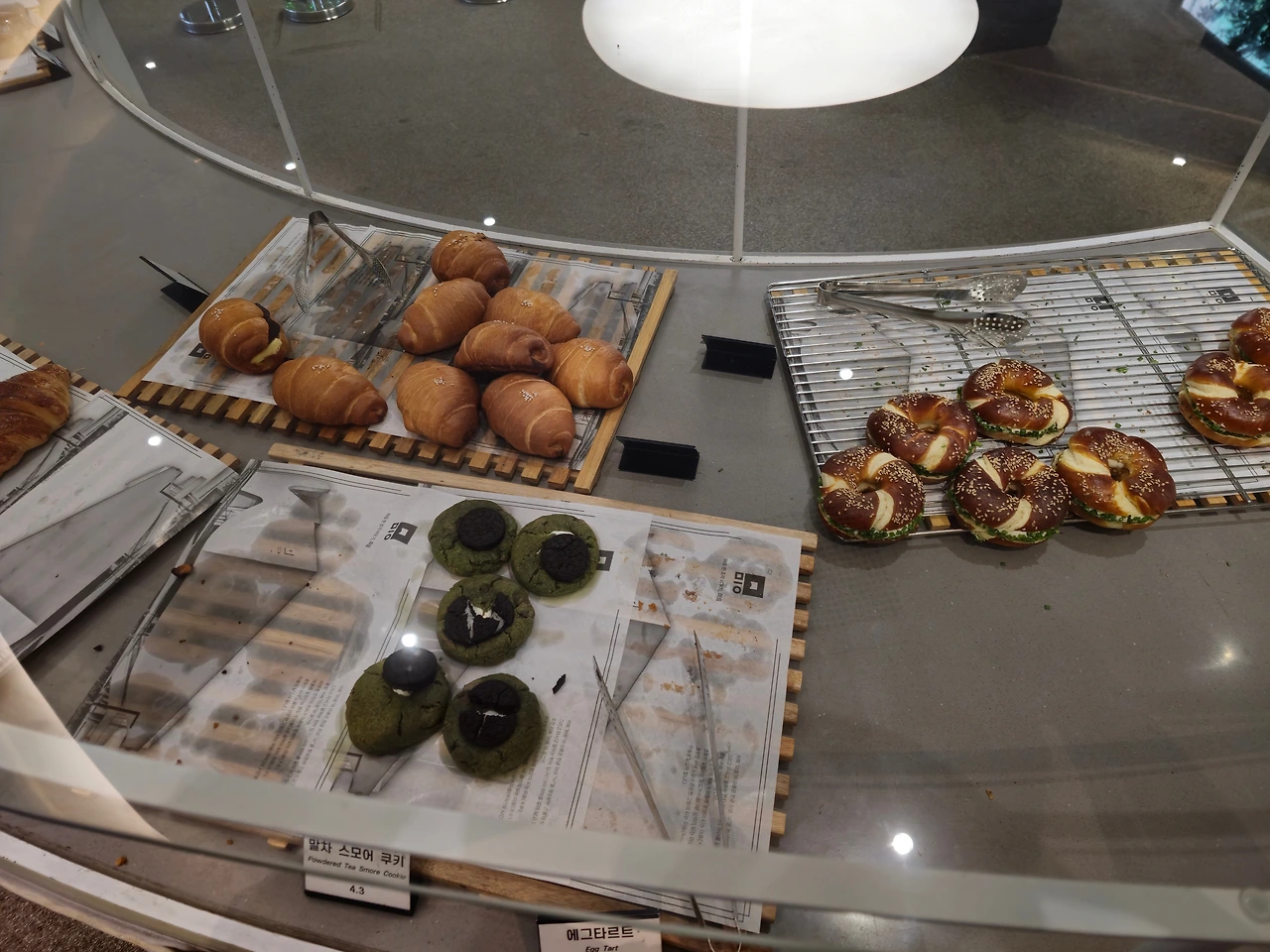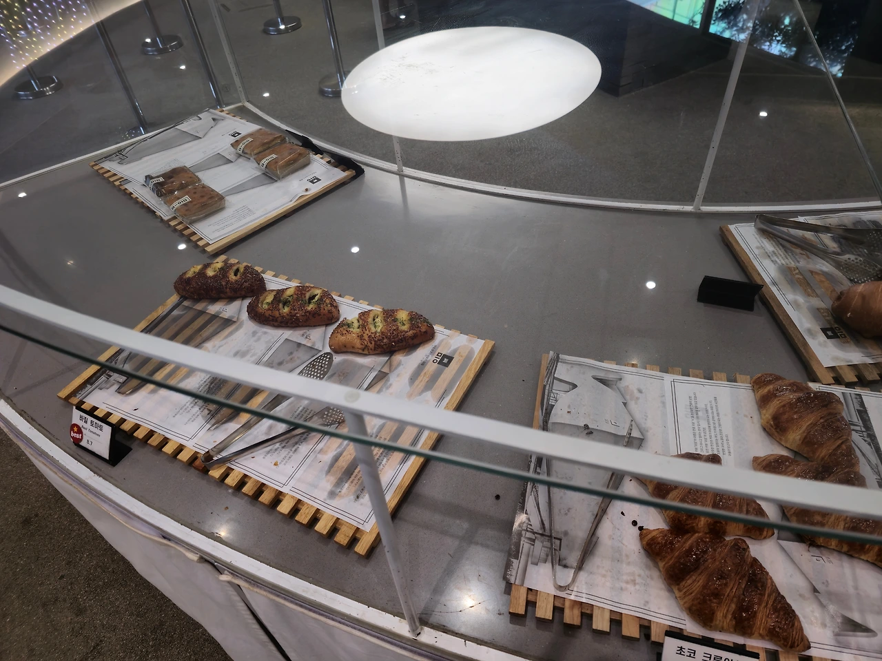 저녁을 먹고 나니 어느덧 해가 슬슬 질 시간이 되었다. 주변에 노을 맛집 카페가 있다고 하여 집으로 돌아가기 전에 들려보기로 했다. 카페 옆에는 주차장이 넓게 있었다. 평일에는 3시간, 주말에는 2시간 반 지원을 해준다는 것 같았다. 물회로 이미 배가 가득 찼기 때문에 맛있어 보이는 빵은 뒤로했다.
