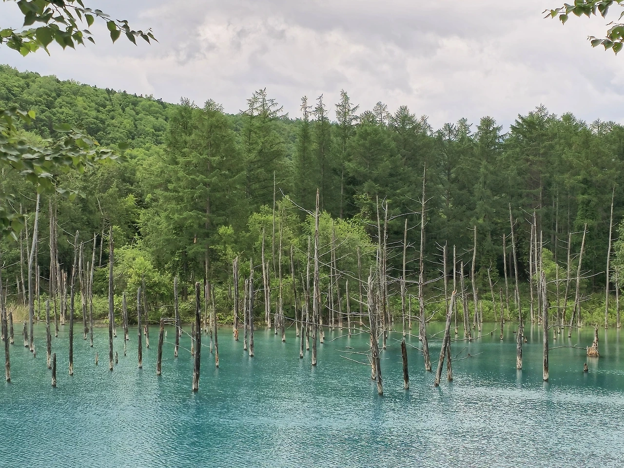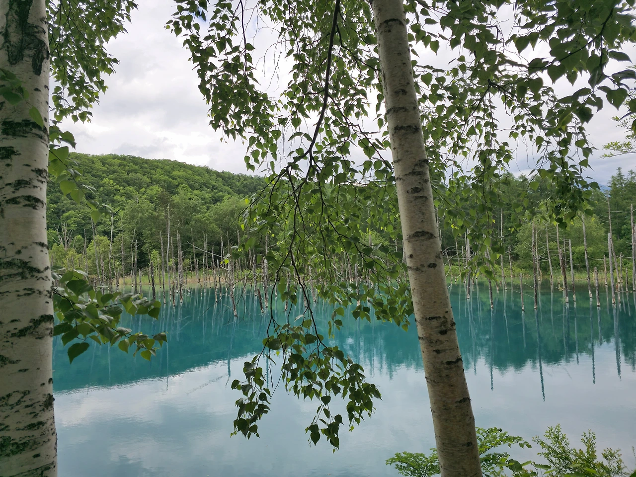 흰수염폭포에서 보이던 푸른 물이 고여 만든 연못이다. 비에이 강에 설치된 제방에 강물이 체류하면서 우연히 생긴 인공 호수라고 한다. 상류의 시로가네(白金) 온천 지역에서 나오는 알루미늄을 함유한 물이 비에이 강의 하천수와 섞이면서 콜로이드(입자가 액체에 분해된 상태) 상태가 되는데, 그 입자가 태양광을 반사해 산란하기 쉬운 푸른빛이 눈에 도달하는 것이라고 한다. OS X Mountain Lion, 애플의 iOS 7, iOS 8 배경 중 하나로 사용되어 더욱 인기가 많아졌다.
