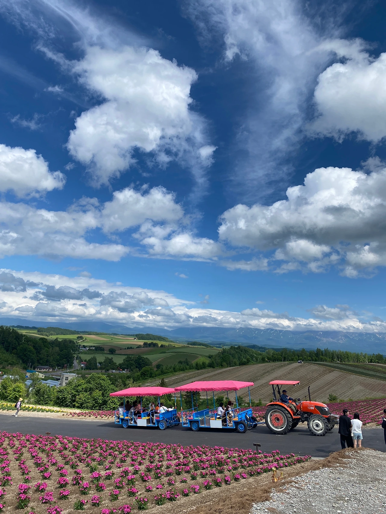 라벤더가 없다고 이곳에 꽃이 안 핀 것은 아니다. 역시 시기가 조금 이르긴 하지만 꽃구경하기 위해 사계채의 언덕을 방문하였다. 이곳은 여러 가지 꽃을 잘 심어놔서 만개했을 때 여러 색들의 꽃이 넓은 면적에 퍼져있는 것을 볼 수 있게 된다. 이곳에 와서는 트랙터로 먼저 한 바퀴 크게 둘러본 다음 내려서 가까이서 꽃 구경하면 된다. 6월에는 꽃은 이제 막 심어놨는지 아직 만개하지 않은 부분들이 많아 아직은 휑한 느낌이 들었다.