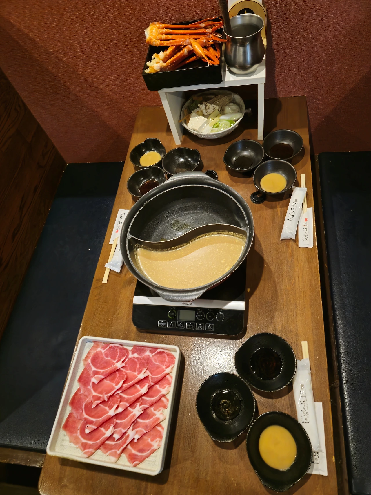 저녁은 게와 샤브를 무한으로 먹을 수 있는 식당이었다. 보통 게에 집중하는 팀들이 많았지만, 우린 게와 소고기 샤부샤부를 둘 다 놓칠 수 없었다. 우선 다행이었던 점은 리필 메뉴를 주문하면 빠르게 가져다준다는 점이었다. 게를 남들보다 빠르게 잘 까는 스킬이 있어 내가 게를 까고 있으면 나머지 가족들은 샤부샤부에 고기를 담가놓으면서 계속 맛있게 먹었다.
